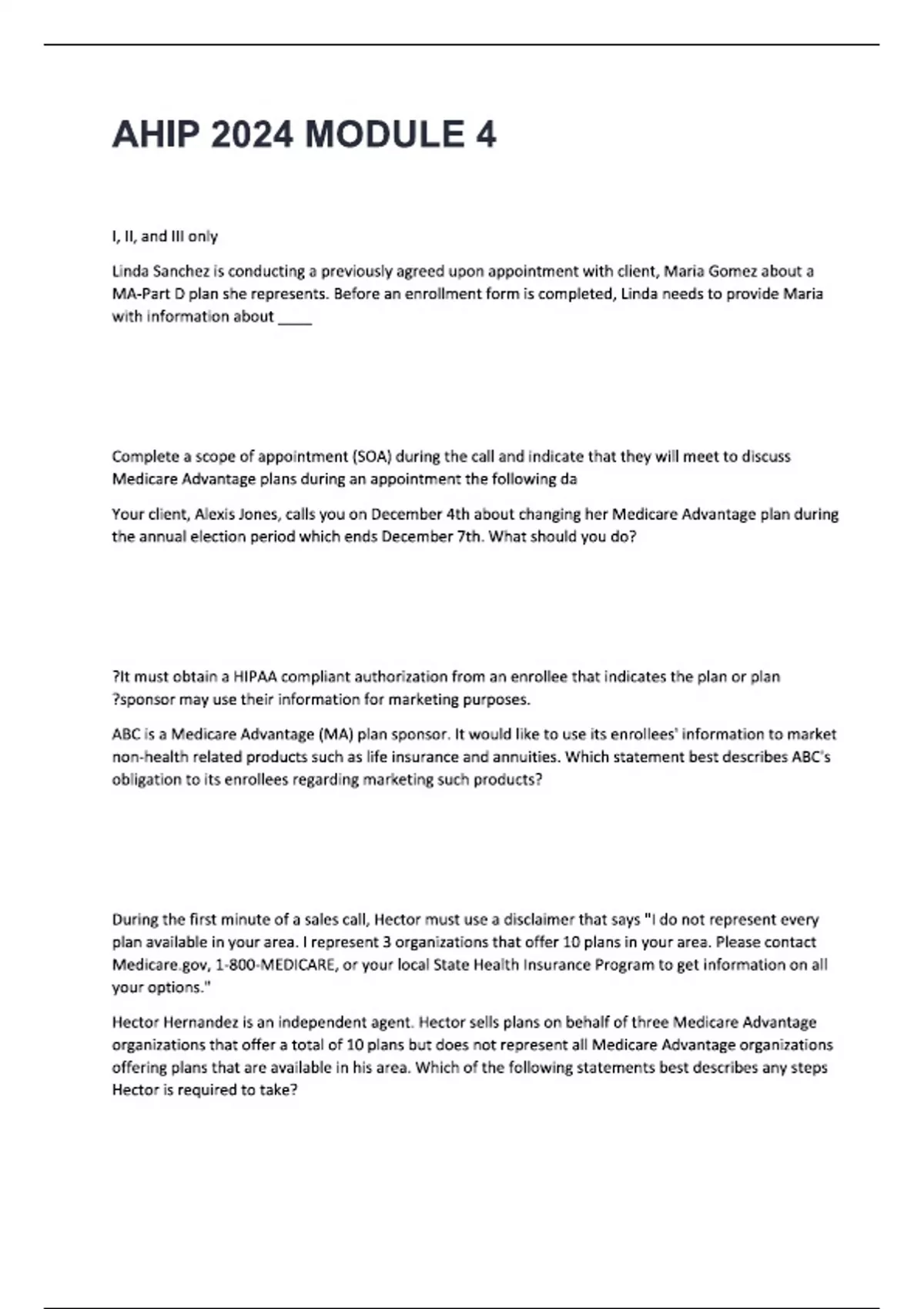MODULE 4 AHIP 2024 LATEST QUESTIONS AND ANSWERS 100% VERIFIED CORRECT | GRADE A+ | UPDATED.
