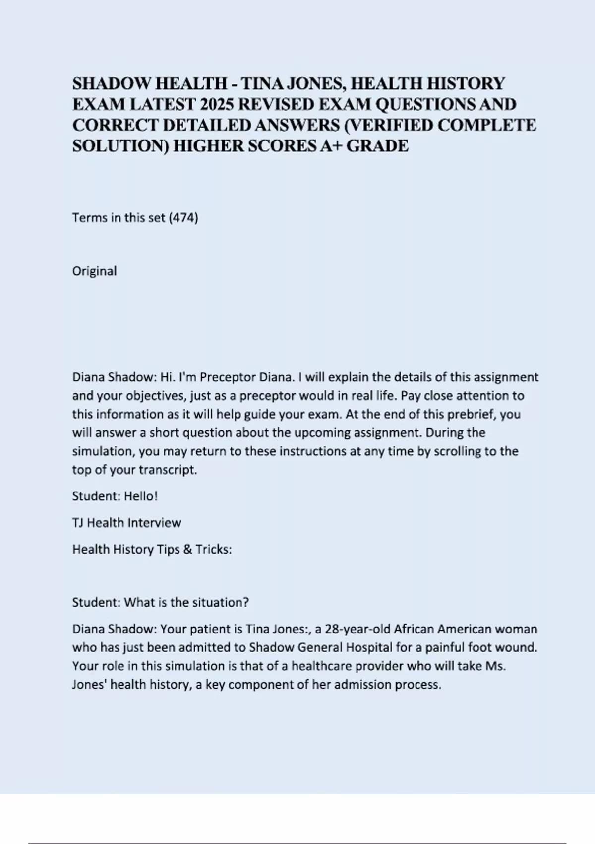 ,Shadow Health - Tina Jones, Health History Package