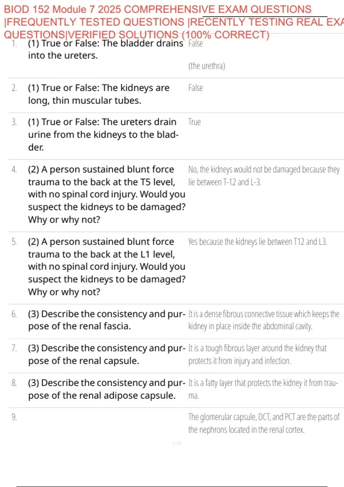 5. (2) A person sustained blunt force Yes because the kidneys lie between T12 and L3.