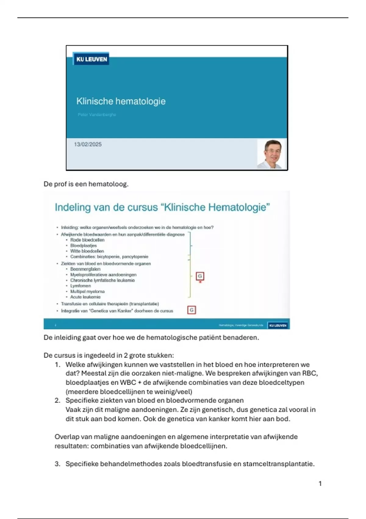 De inleiding gaat over hoe we de hematologische patiënt benaderen.