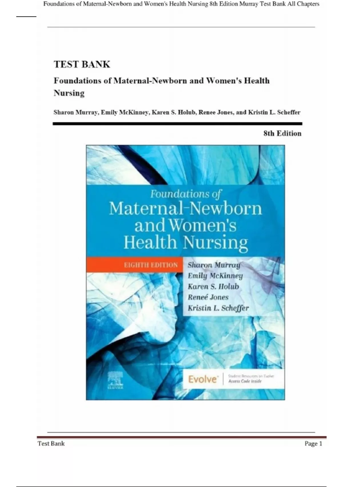 Test Bank For Maternal-Newborn and Women’s Health Nursing 8th Edition by Sharon Smith Murray , Emily Slone McKinney. All Chapters 1-28. Newest Edition