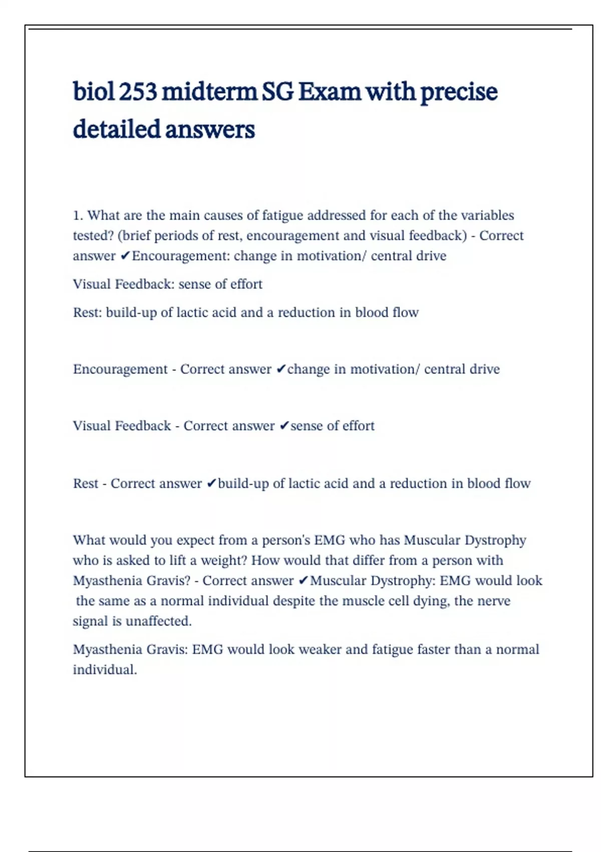 Myasthenia Gravis? - Correct answer ✔Muscular Dystrophy: EMG would look