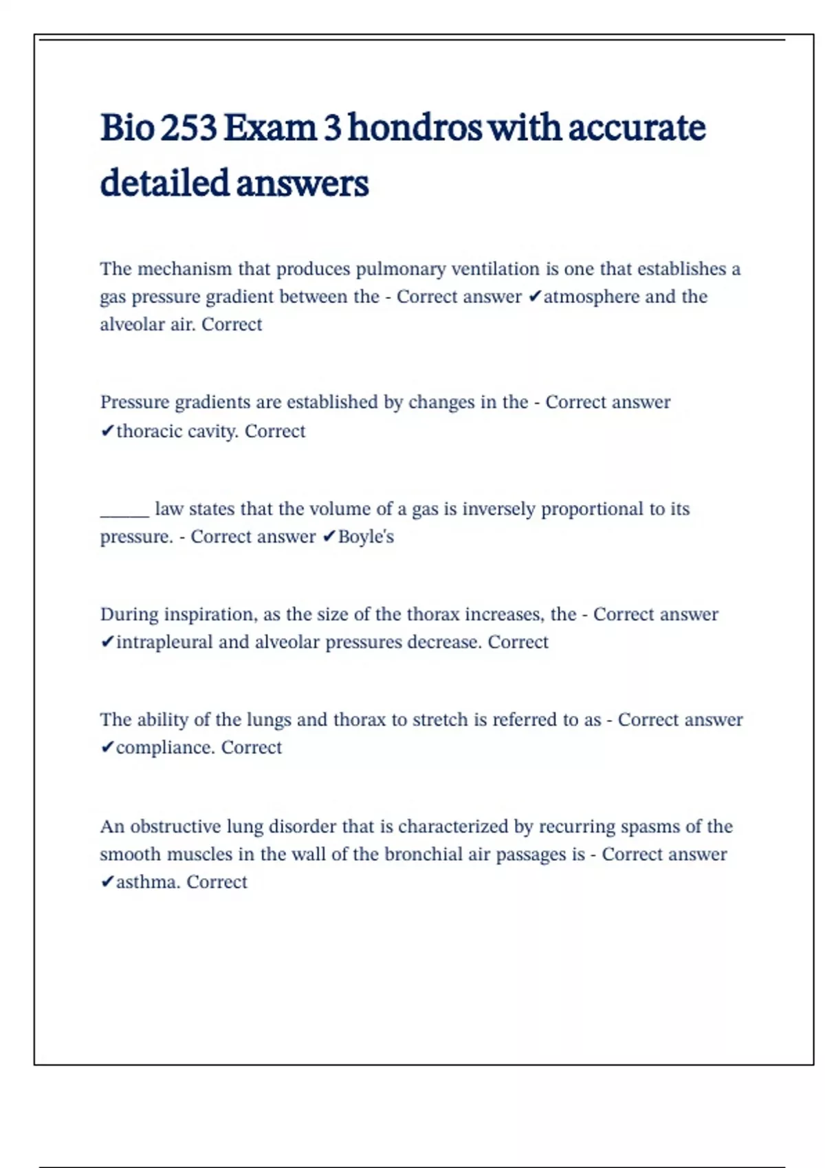 Bio 253 Exam 3 hondros with accurate detailed answers