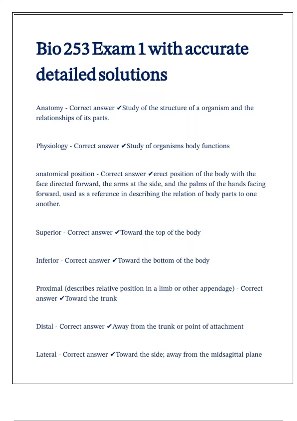 Bio 253 Exam 1 with accurate