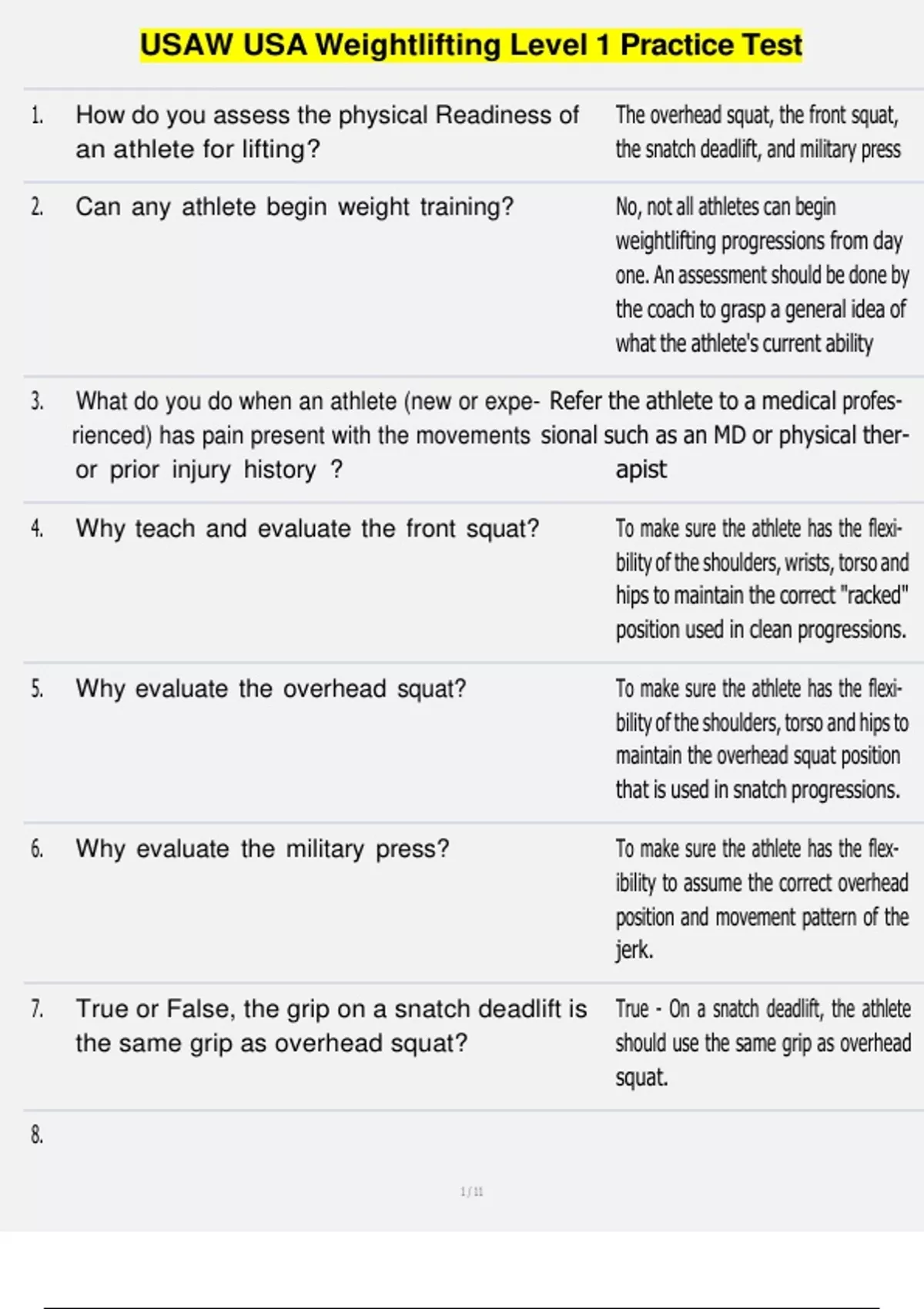 1. How do you assess the physical Readiness of The overhead squat, the front squat,