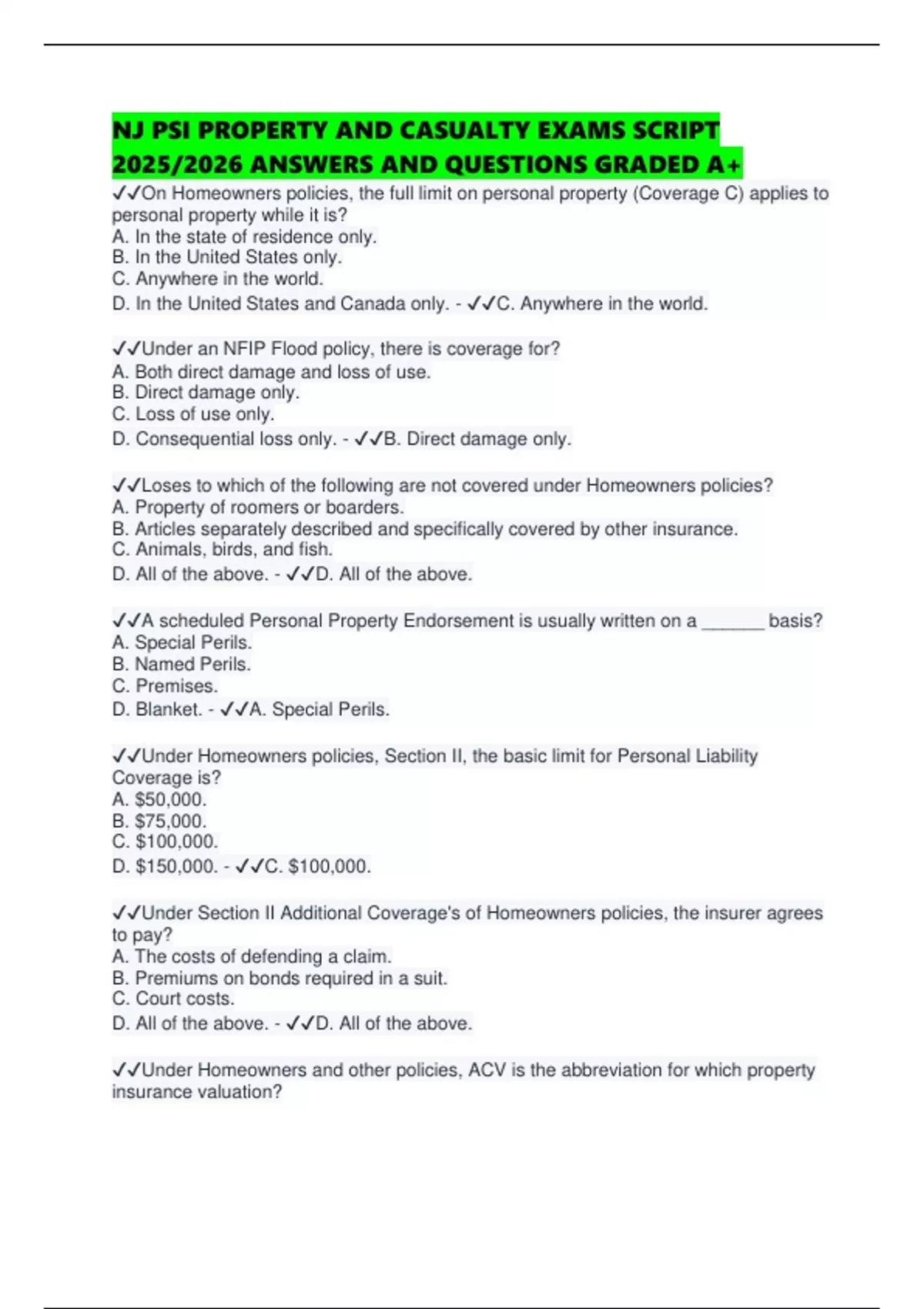 ✔✔On Homeowners policies, the full limit on personal property (Coverage C) applies to