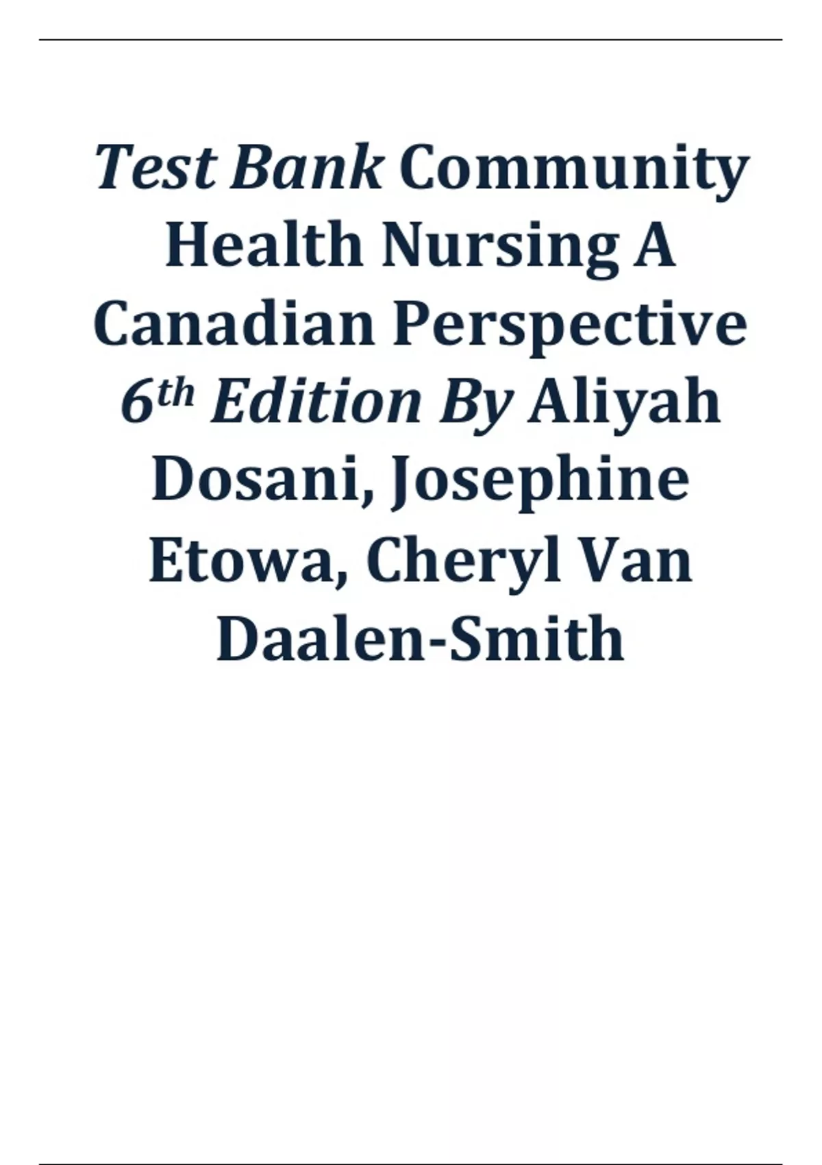 Community Health Nursing A Canadian Perspective 6th Edition Stamler