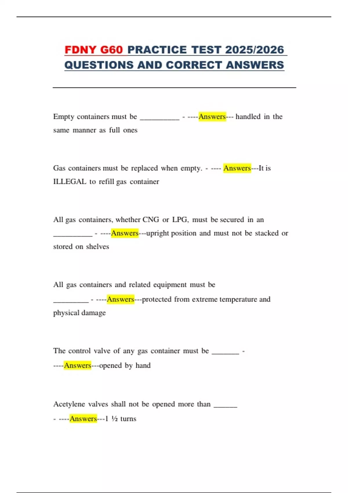 A compressed gas container MUST NOT ________ - ---- Answers---be