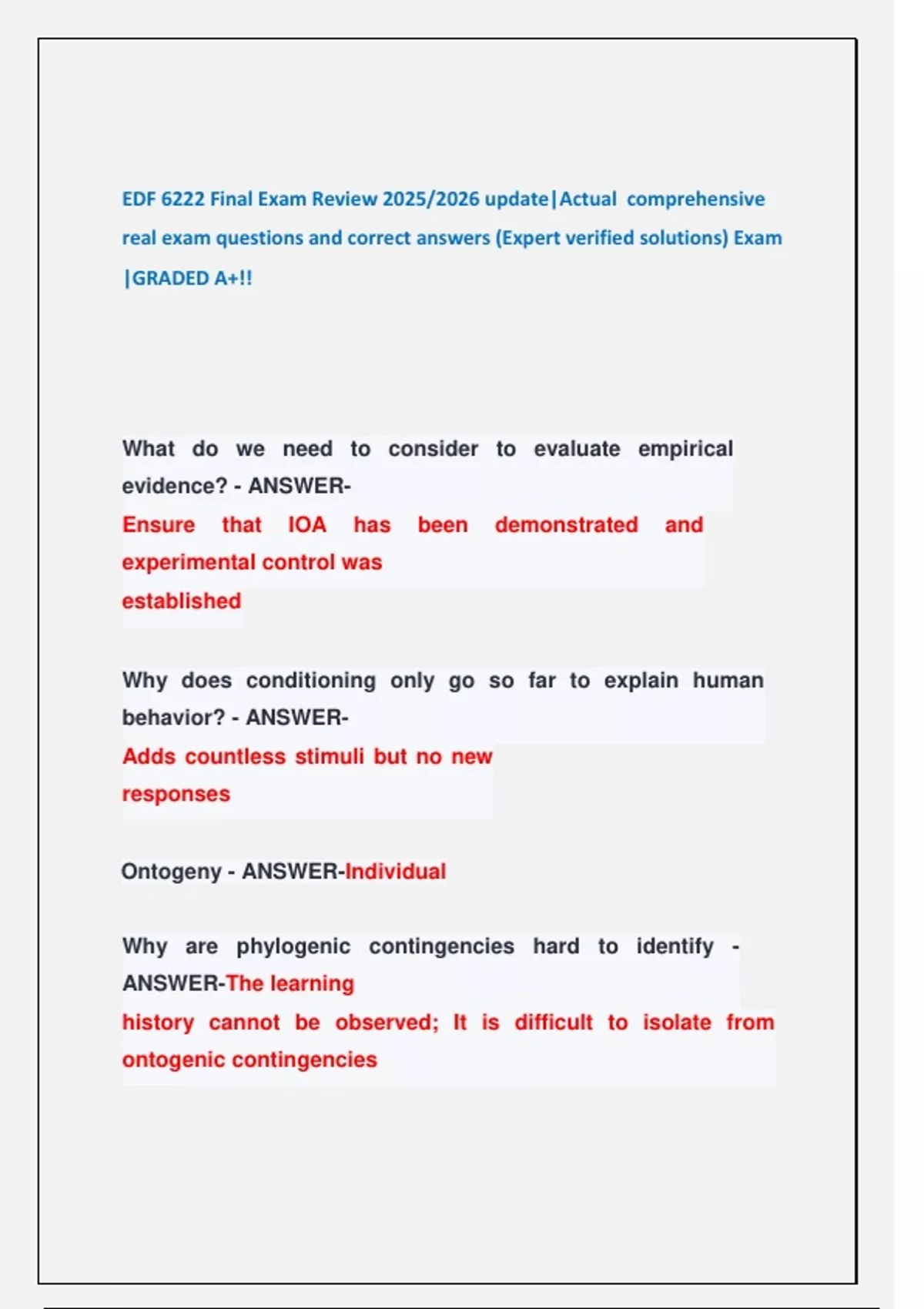 real exam questions and correct answers (Expert verified solutions) Exam