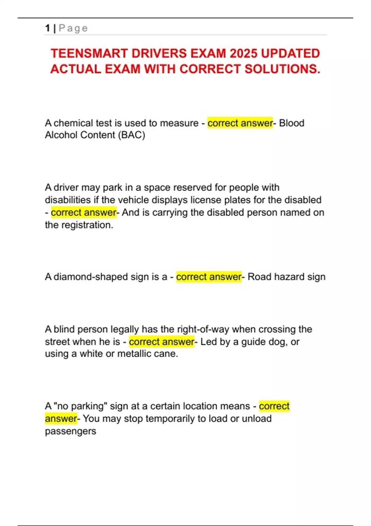 TEENSMART DRIVERS EXAM 2025 UPDATED ACTUAL EXAM WITH CORRECT SOLUTIONS.