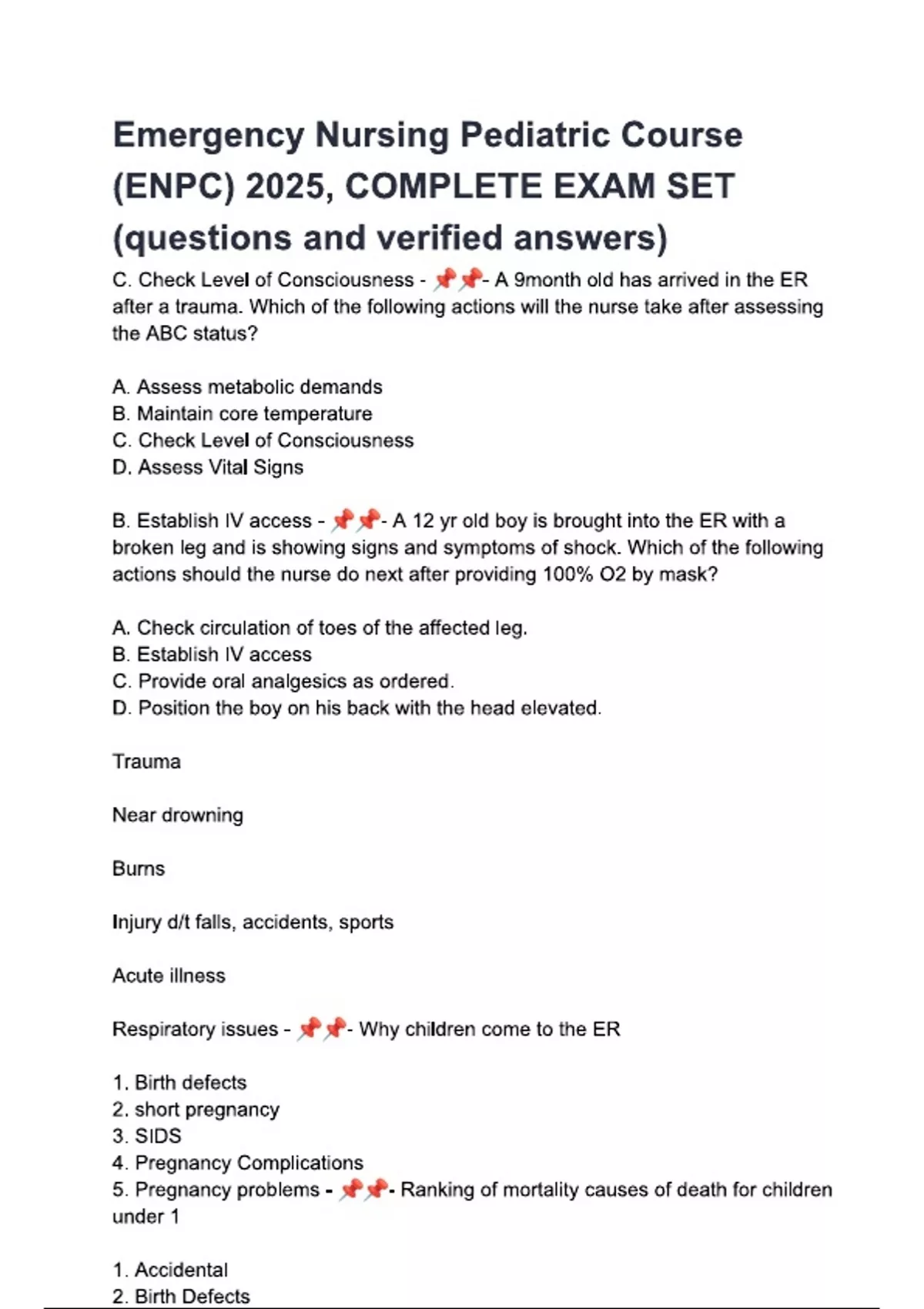 Emergency Nursing Pediatric Course (ENPC) 2025, Questions and Answers