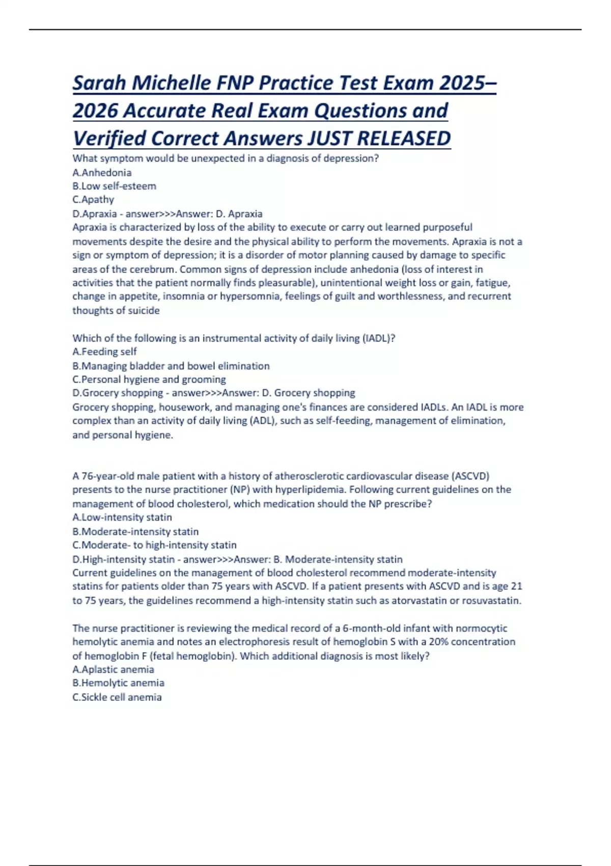 Verified Correct Answers JUST RELEASED