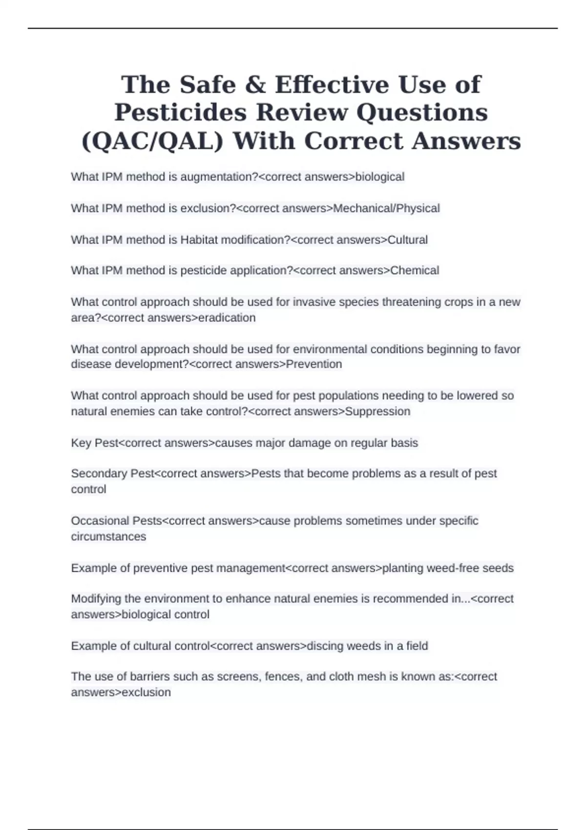 Example of preventive pest management<correct answers>planting weed-free seeds