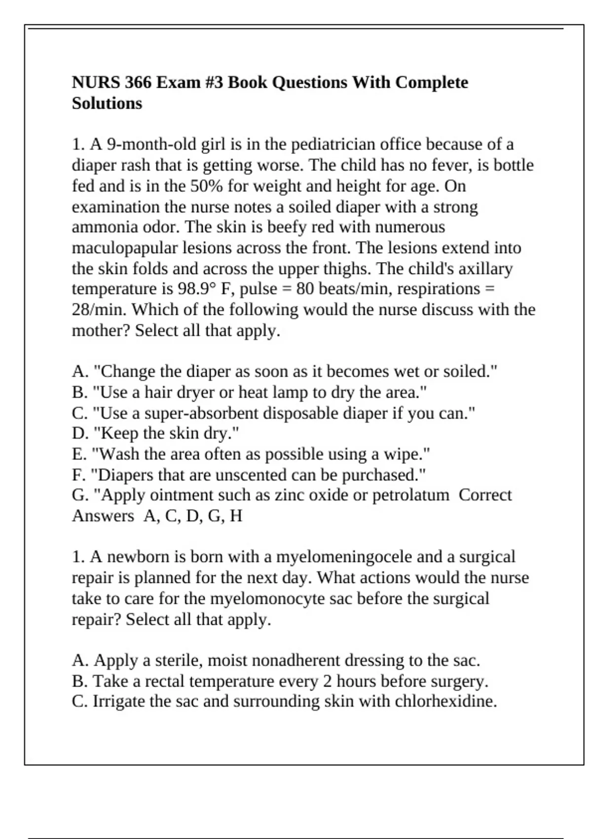 NURS 366 Exam #3 Book Questions With Complete Solutions