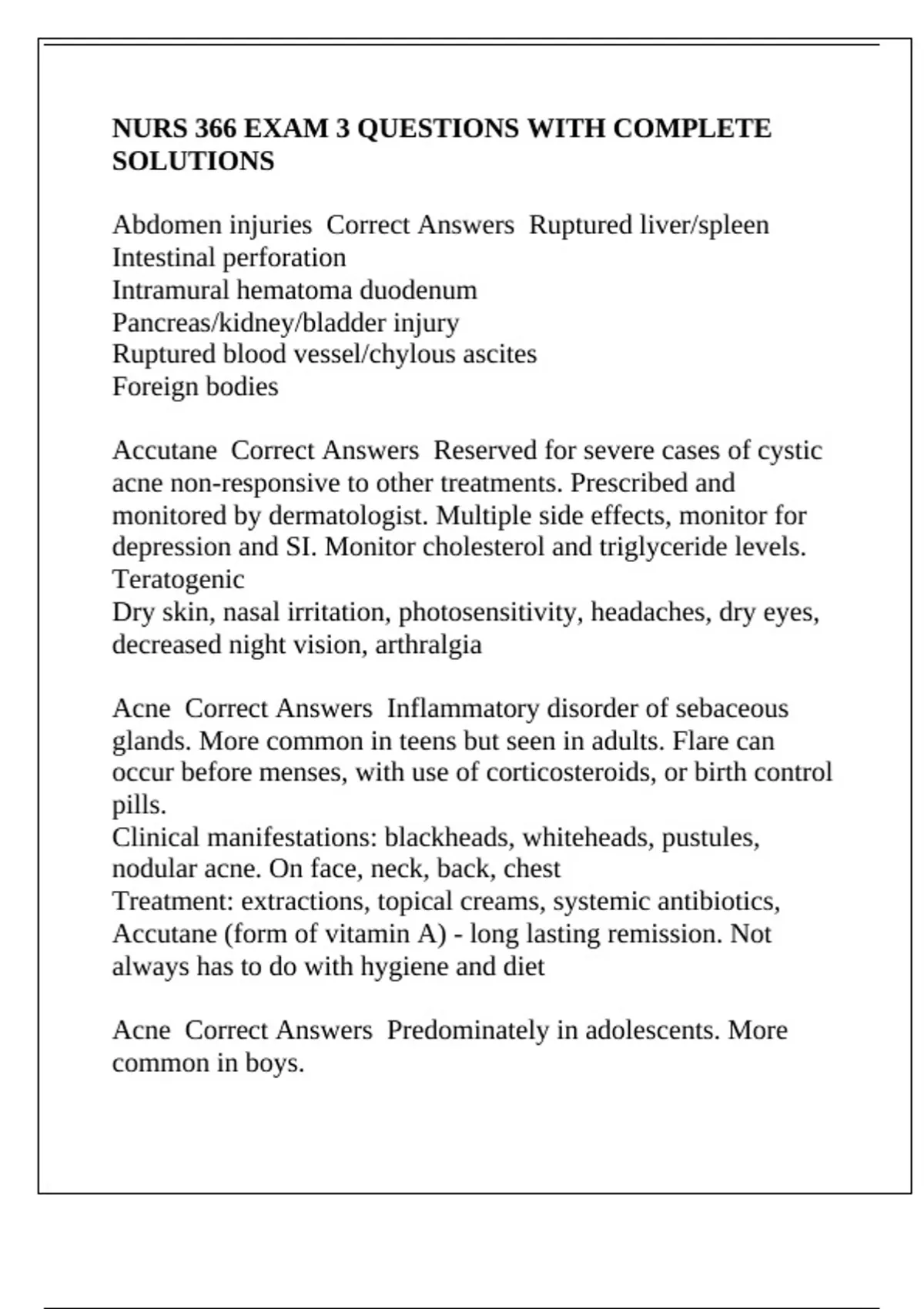 Accutane Correct Answers Reserved for severe cases of cystic