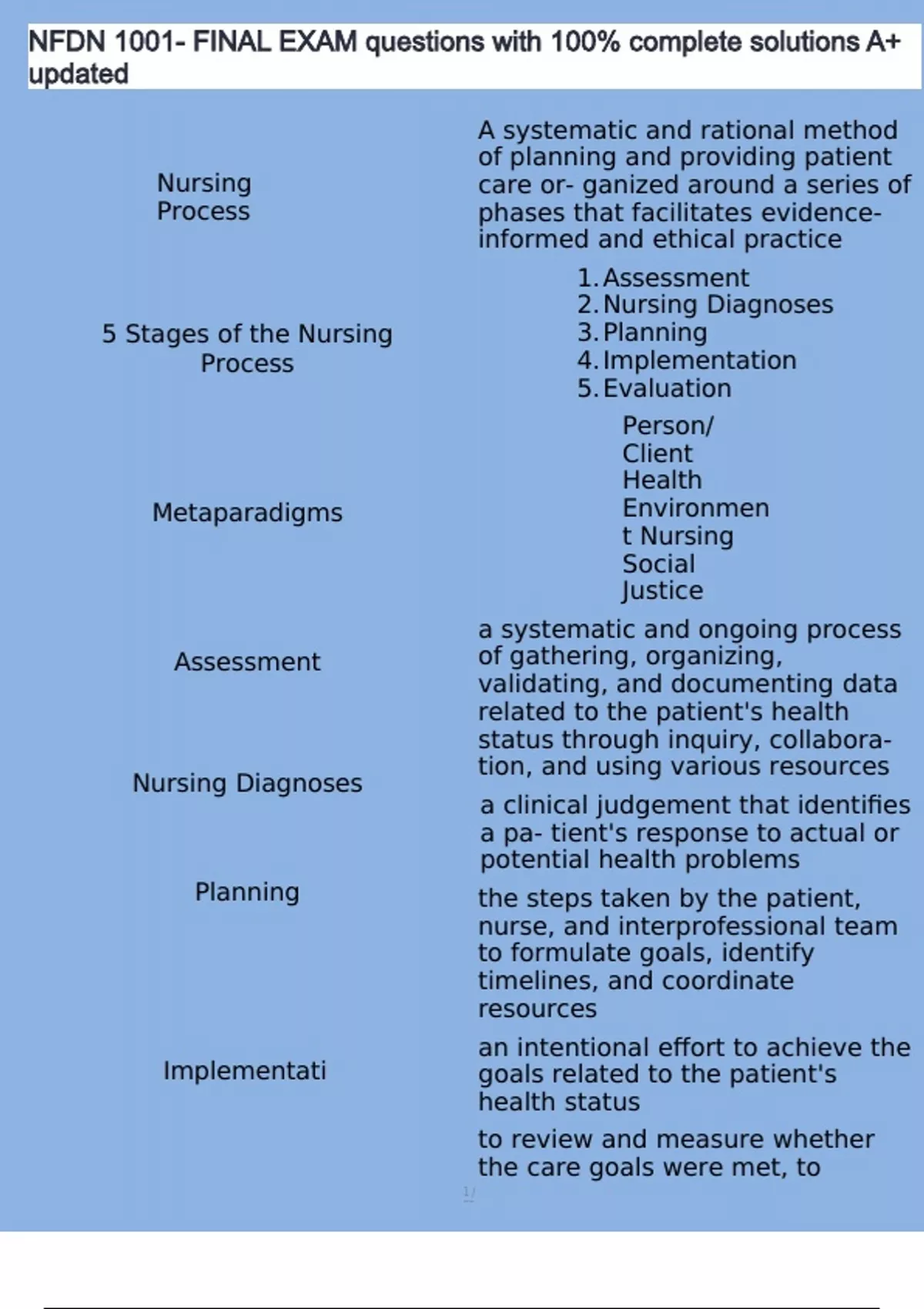 NFDN 1001- FINAL EXAM questions with 100% complete solutions A+
