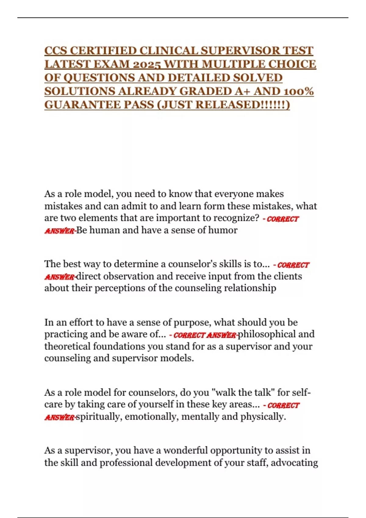 to ensure quality of clinical care? - CORRECT ANSWER-Supervision