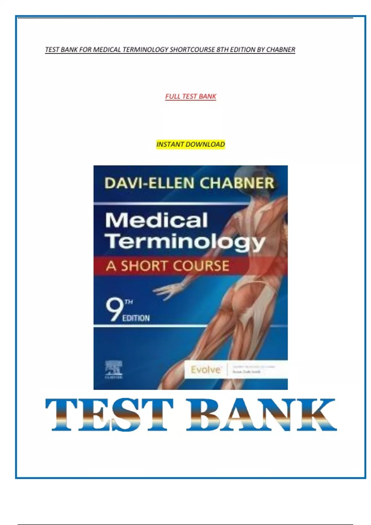 TEST BANK FOR MEDICAL TERMINOLOGY SHORTCOURSE 8th EDITION BY CHABNER