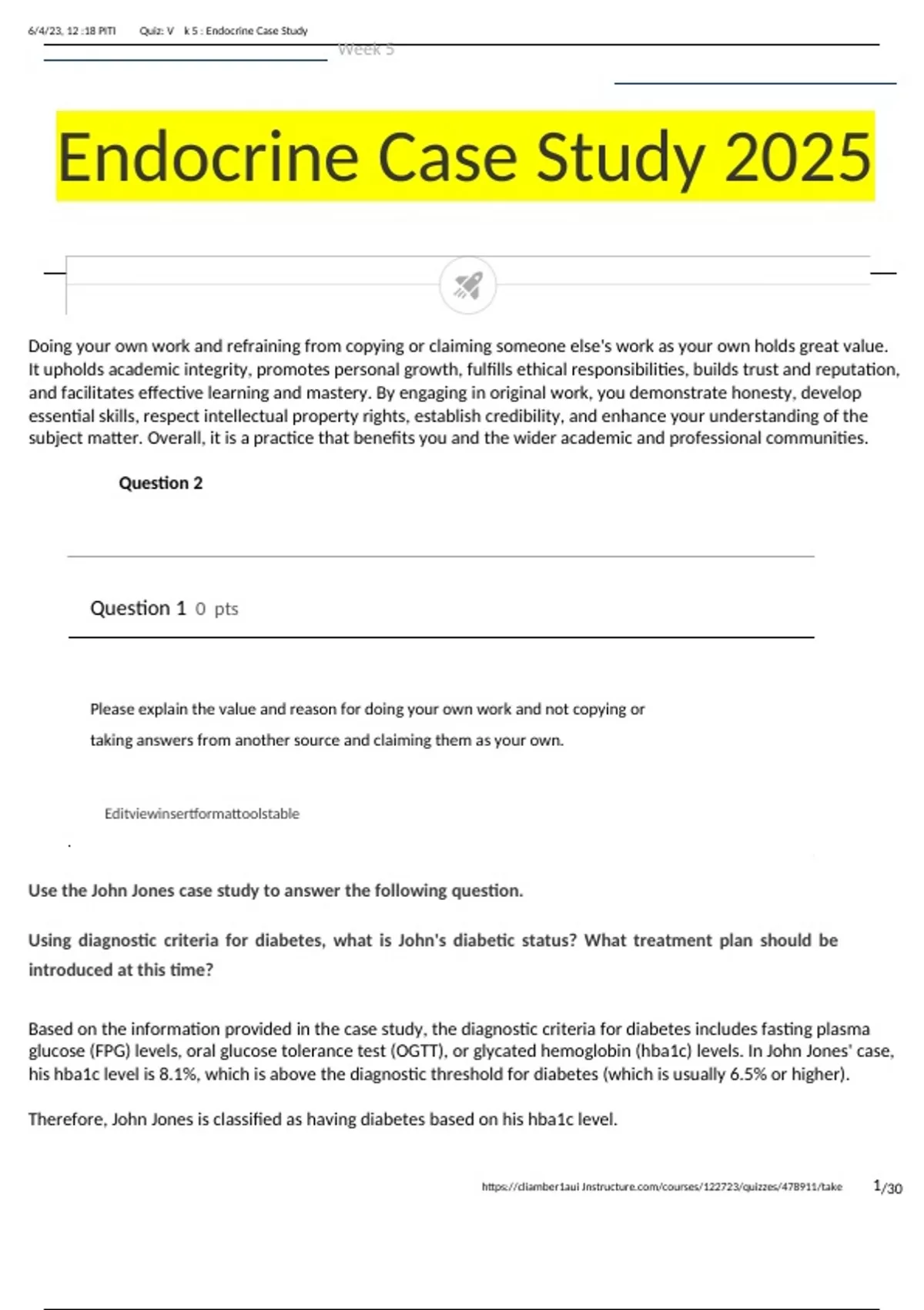 , 6/4/23, 12 :18 PITI Quiz: V k 5 : Endocrine Case Study