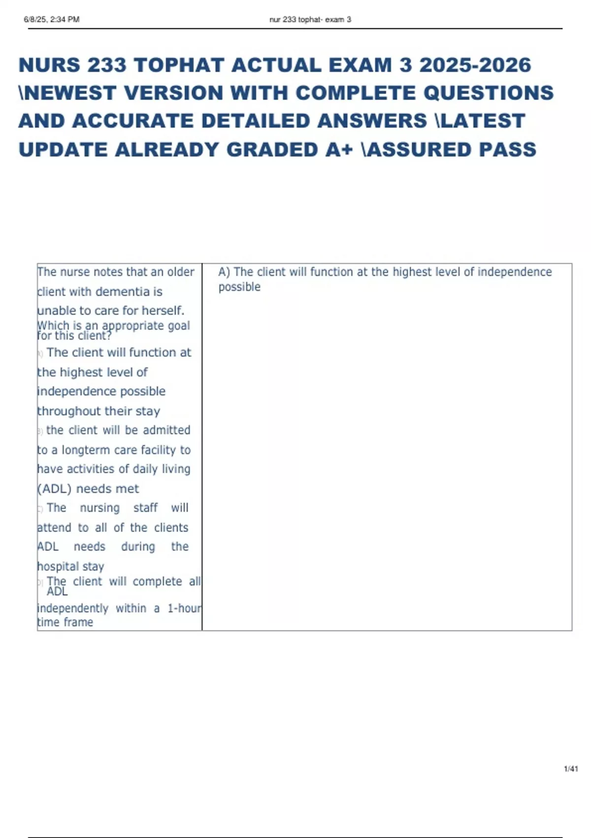 UPDATE ALREADY GRADED A+ \ASSURED PASS