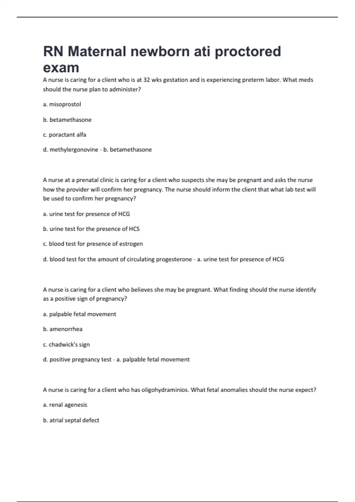 A nurse at a prenatal clinic is caring for a client who suspects she may be pregnant and asks the nurse