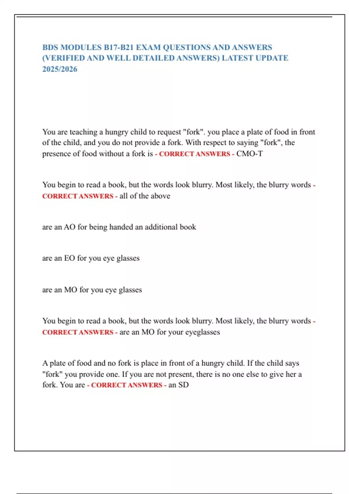 BDS MODULES B17-B21 EXAM QUESTIONS AND ANSWERS