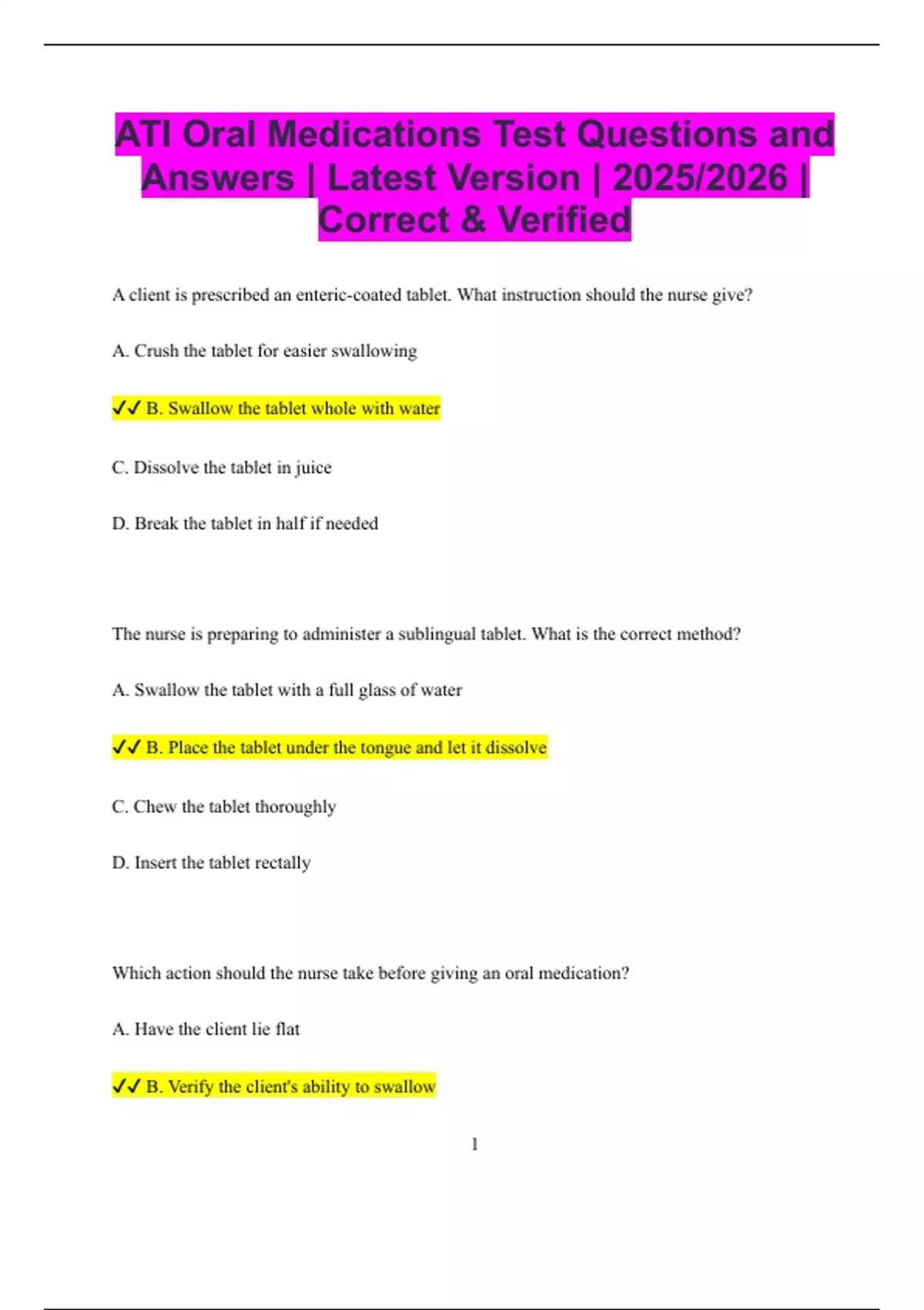 ✔✔ B. Place the tablet under the tongue and let it dissolve