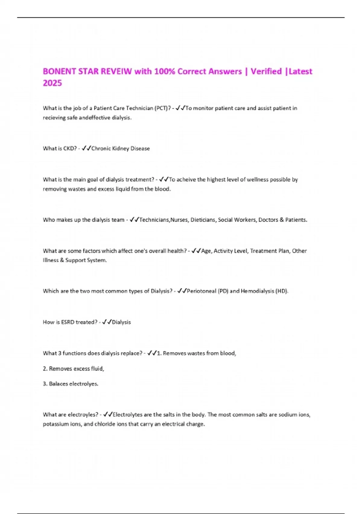 BONENT STAR REVEIW with 100% Correct Answers | Verified |Latest 2025