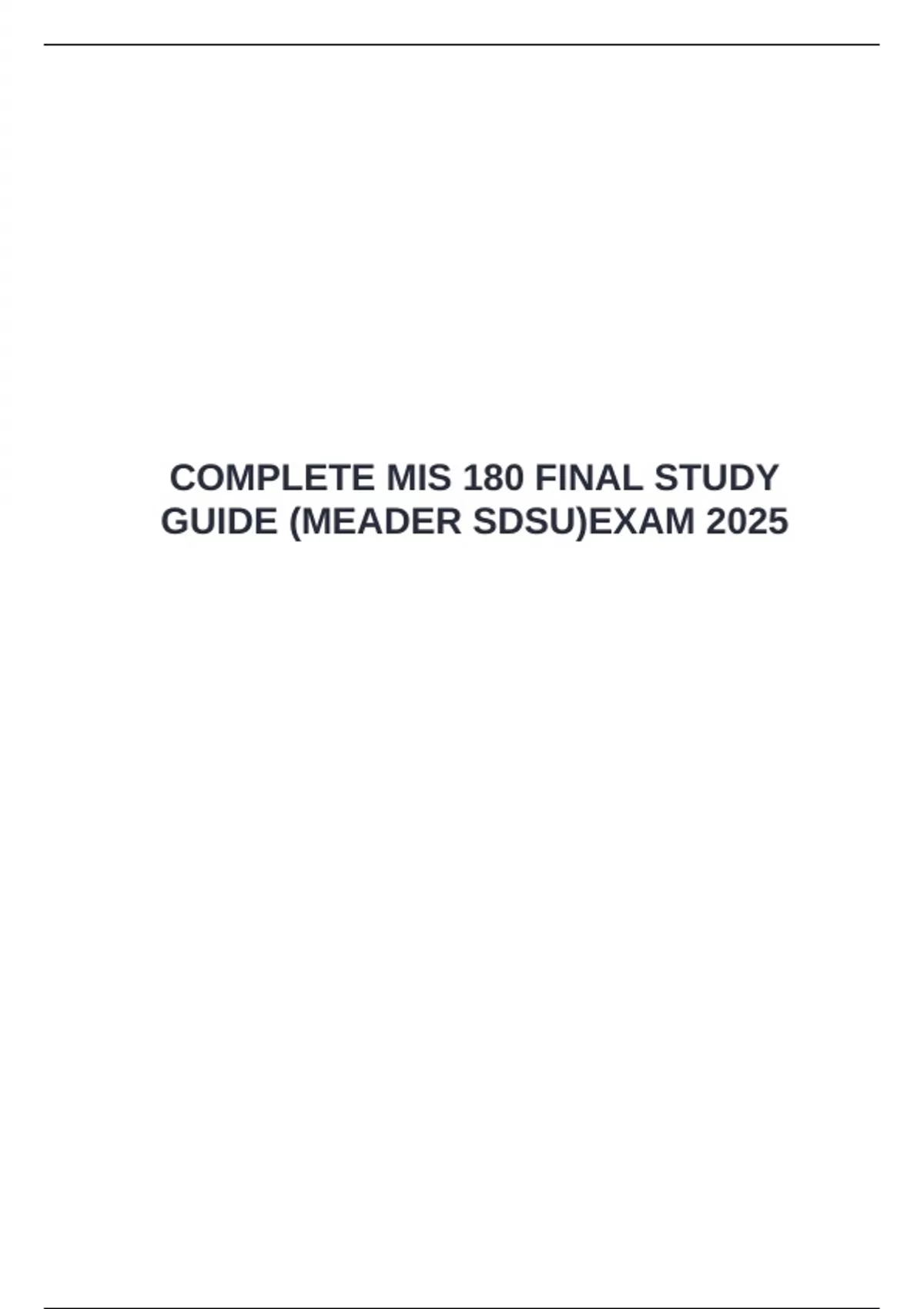 COMPLETE MIS 180 FINAL STUDY GUIDE (MEADER SDSU)EXAM 2025