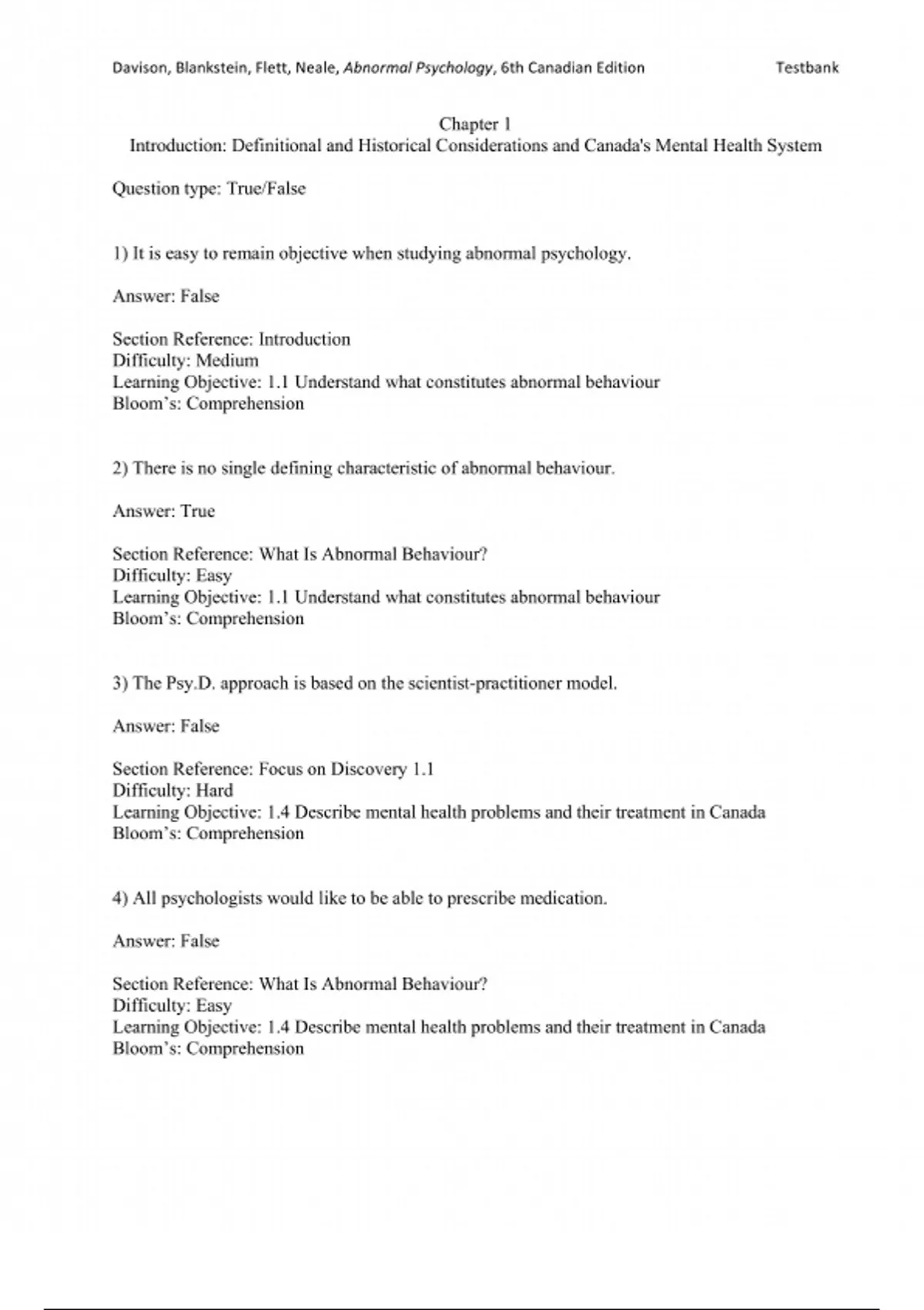 Get the full test bank for Abnormal Psychology, Canadian 6th Edition by Gordon L. Flett. Includes chapter-based multiple-choice, true/false, and case study questions tailored to Canadian content—perfect for psychology students and mental health course exam prep.