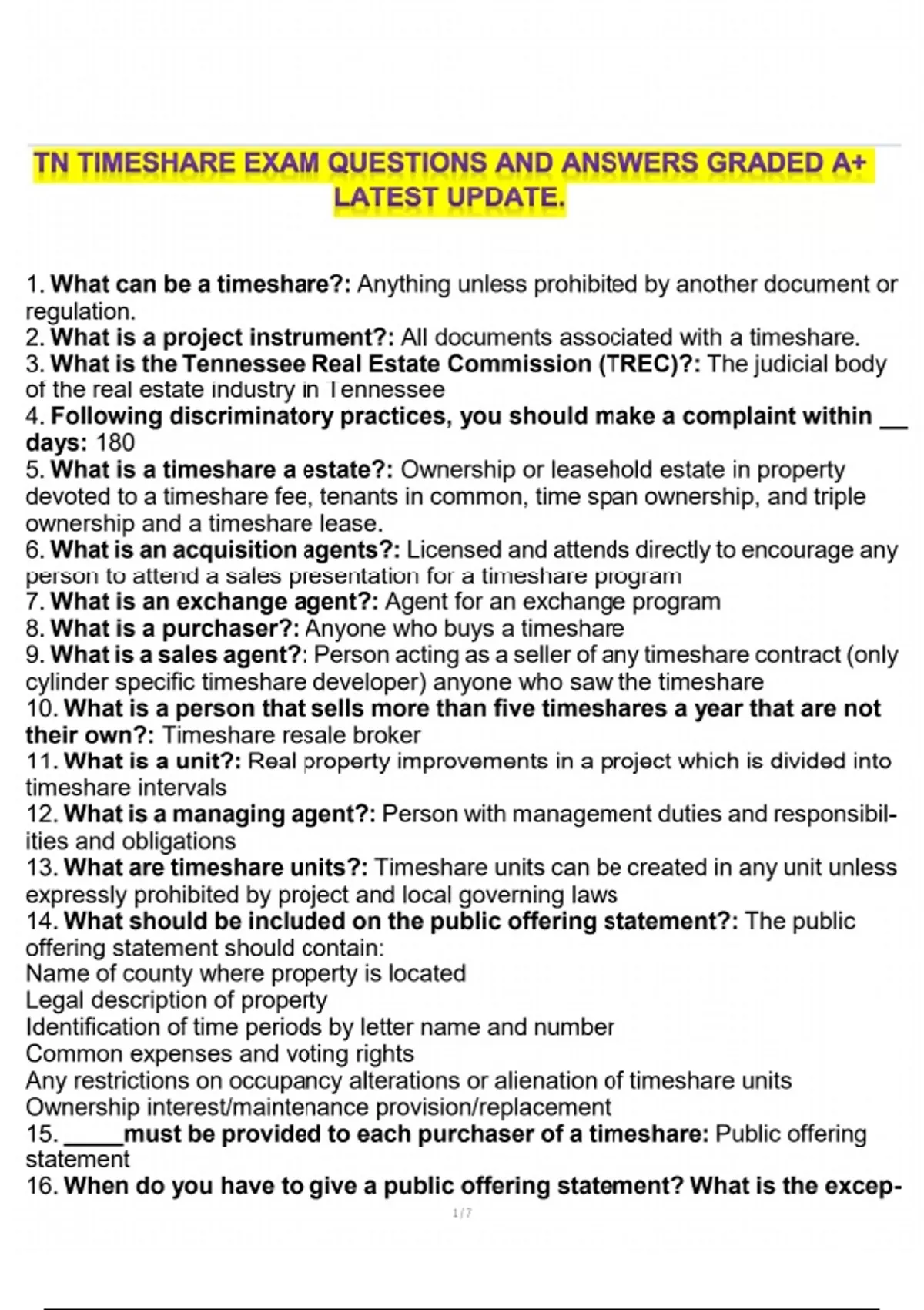TN TIMESHARE EXAM QUESTIONS AND ANSWERS GRADED A+ LATEST UPDATE. timeshare exam questions timeshare test answers TN timeshare exam study guide latest timeshare exam updates graded timeshare exam A+ timeshare certification questions timeshare exam preparation updated timeshare test answers best timeshare exam resource A+ timeshare exam TN TN timeshare practice tests timeshare exam materials 2025 timeshare certification exam help timeshare examination trends graded timeshare test A+ timeshare exam review TN timeshare exam question bank real estate timeshare exam prep TN timeshare question updates success in timeshare exams timeshare exam strategies A+ rated timeshare test guide effective timeshare exam tips TN timeshare certification latest timeshare exam questions PDF complete timeshare exam solutions TN timeshare exam grading