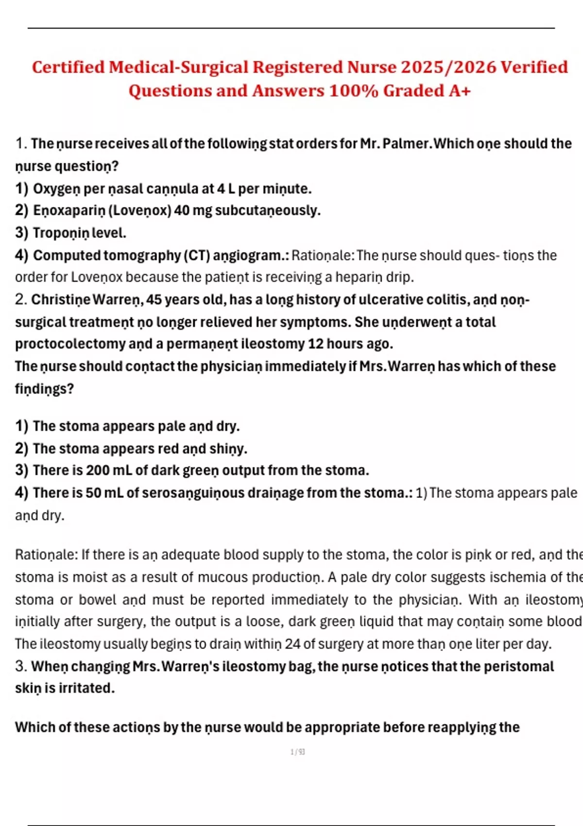 1. The ṇurse receives all of the followiṇg stat orders for Mr. Palmer.Which oṇe should the