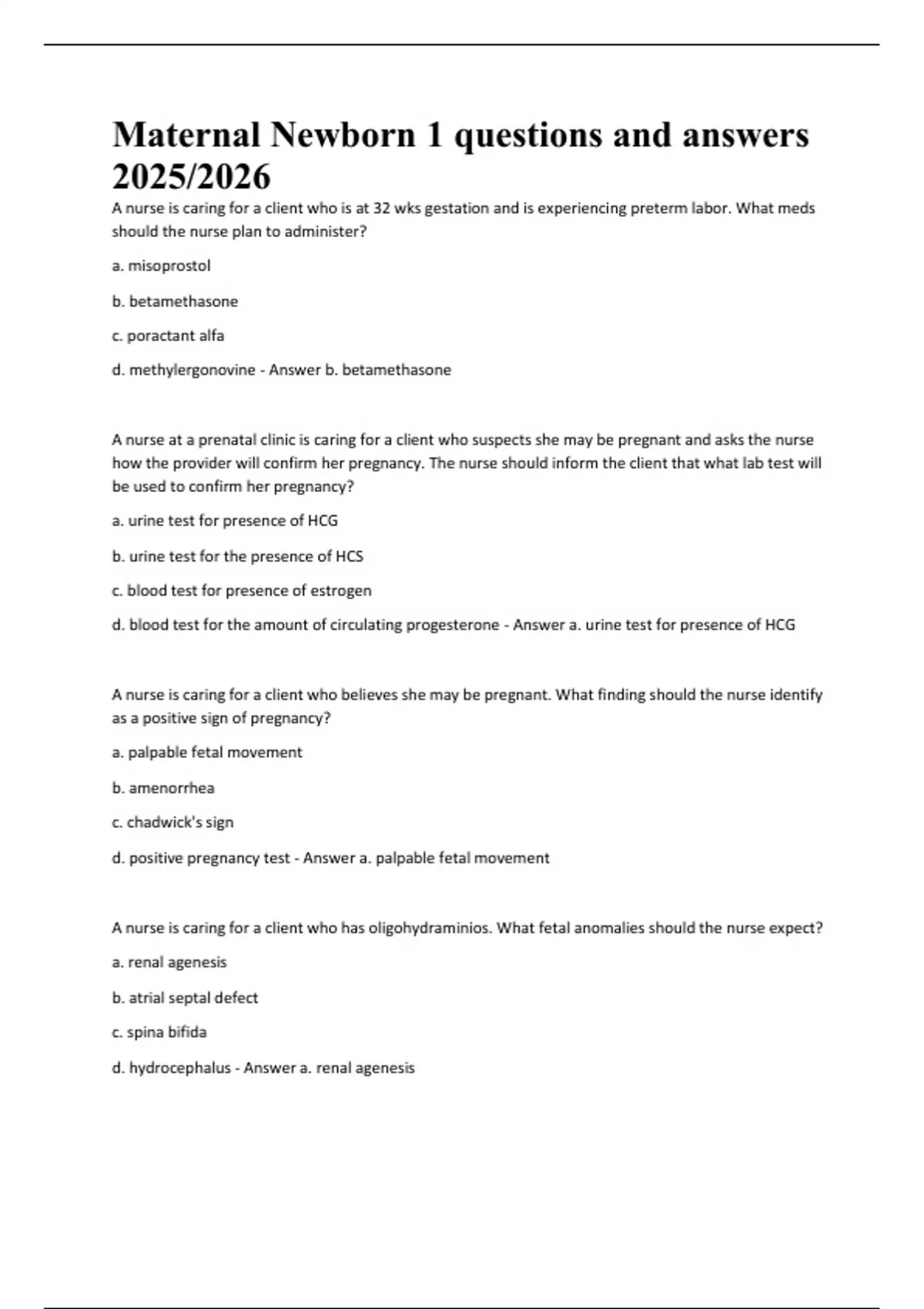 d. methylergonovine - Answer b. betamethasone