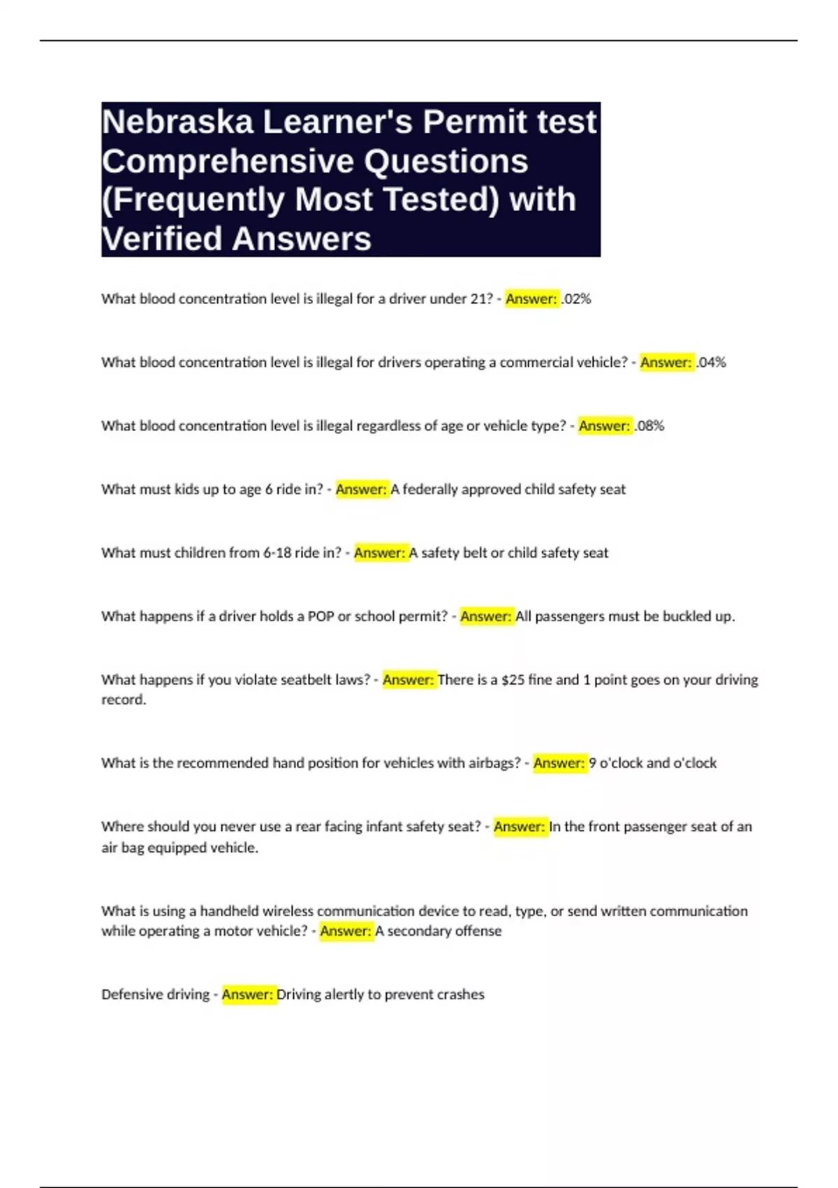 Defensive driving - Answer: Driving alertly to prevent crashes