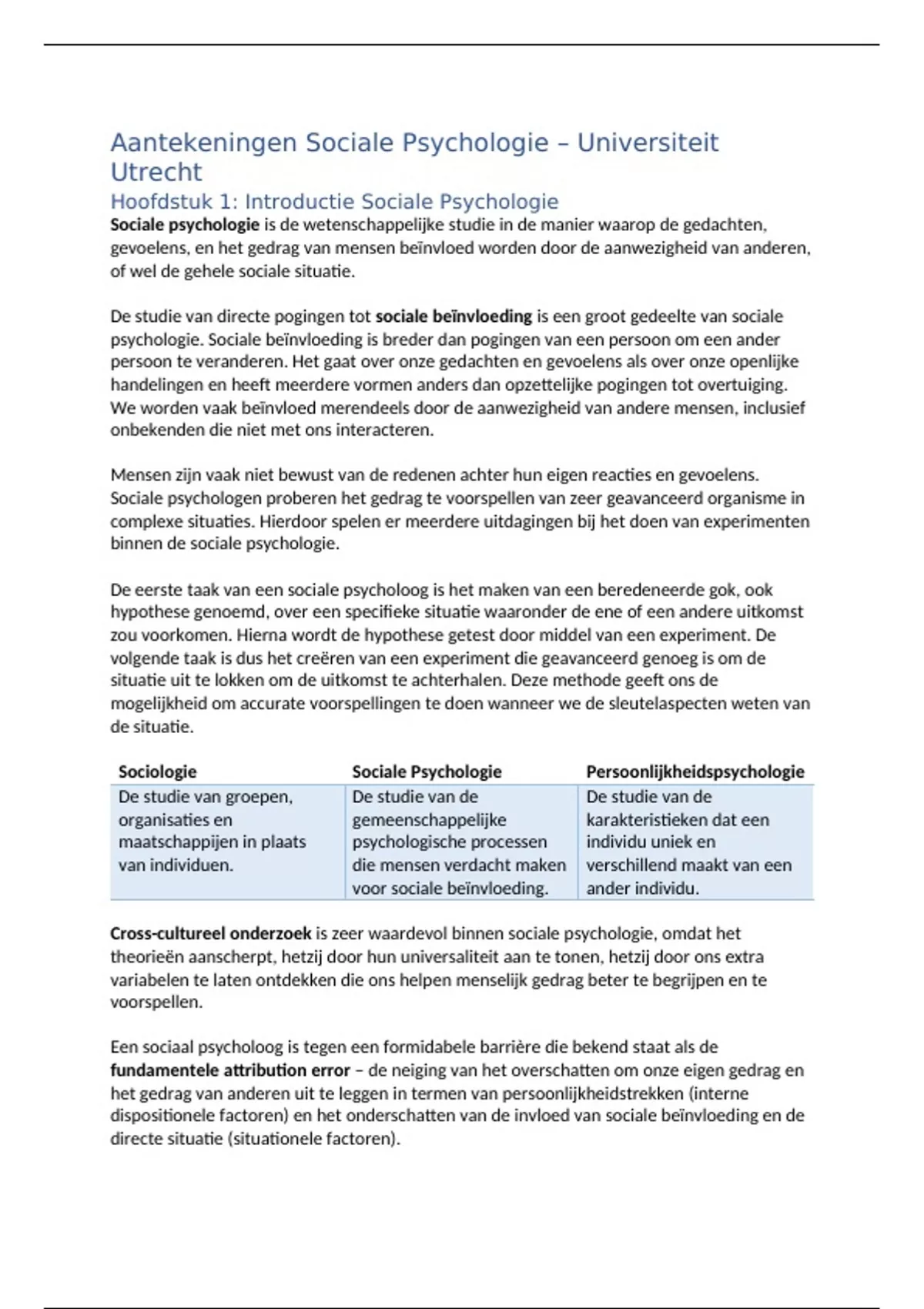 Hoofdstuk 1: Introductie Sociale Psychologie