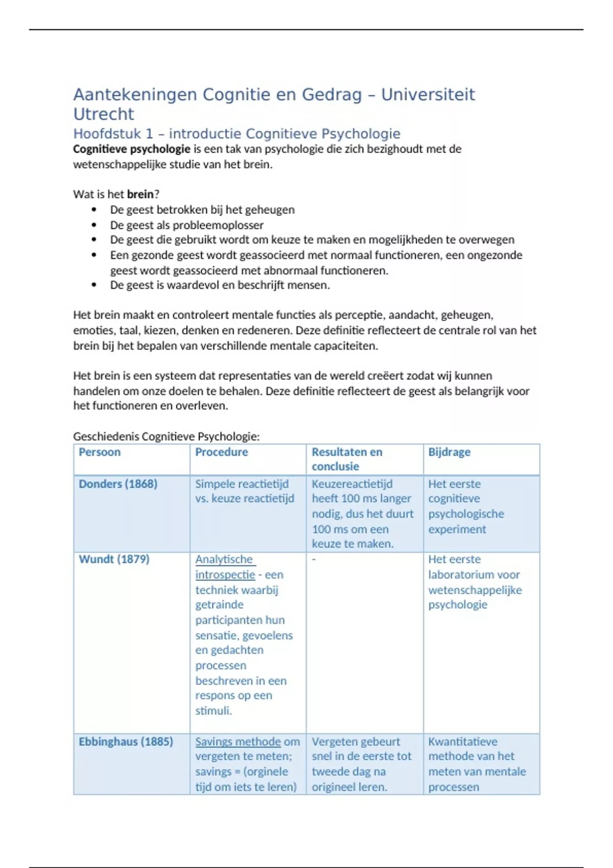 Aantekeningen Cognitie en Gedrag – Universiteit