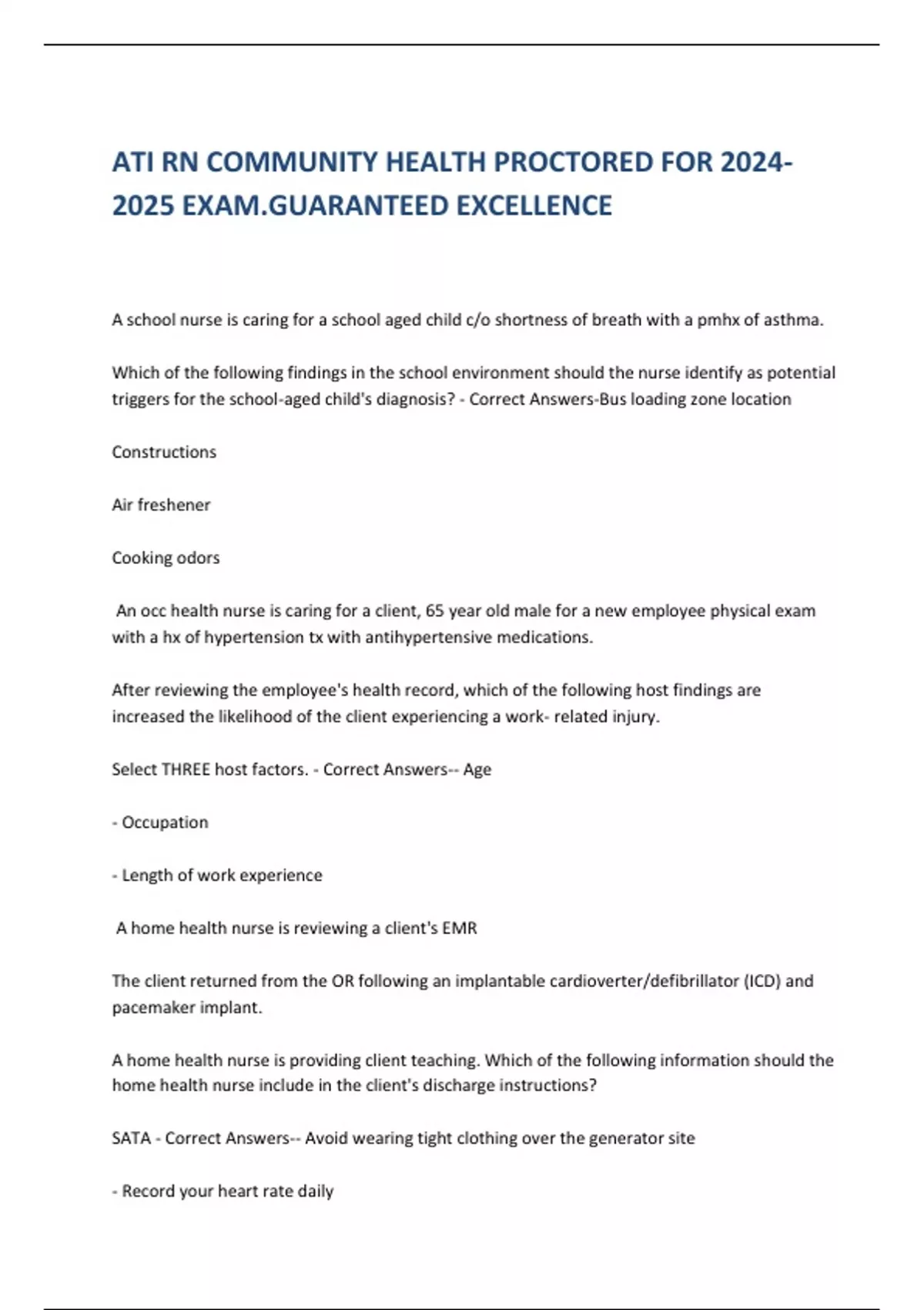 ATI RN COMMUNITY HEALTH PROCTORED FOR 2024-