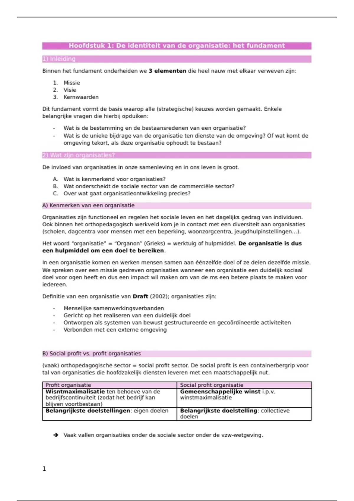 Hoofdstuk 1: De identiteit van de organisatie: het fundament