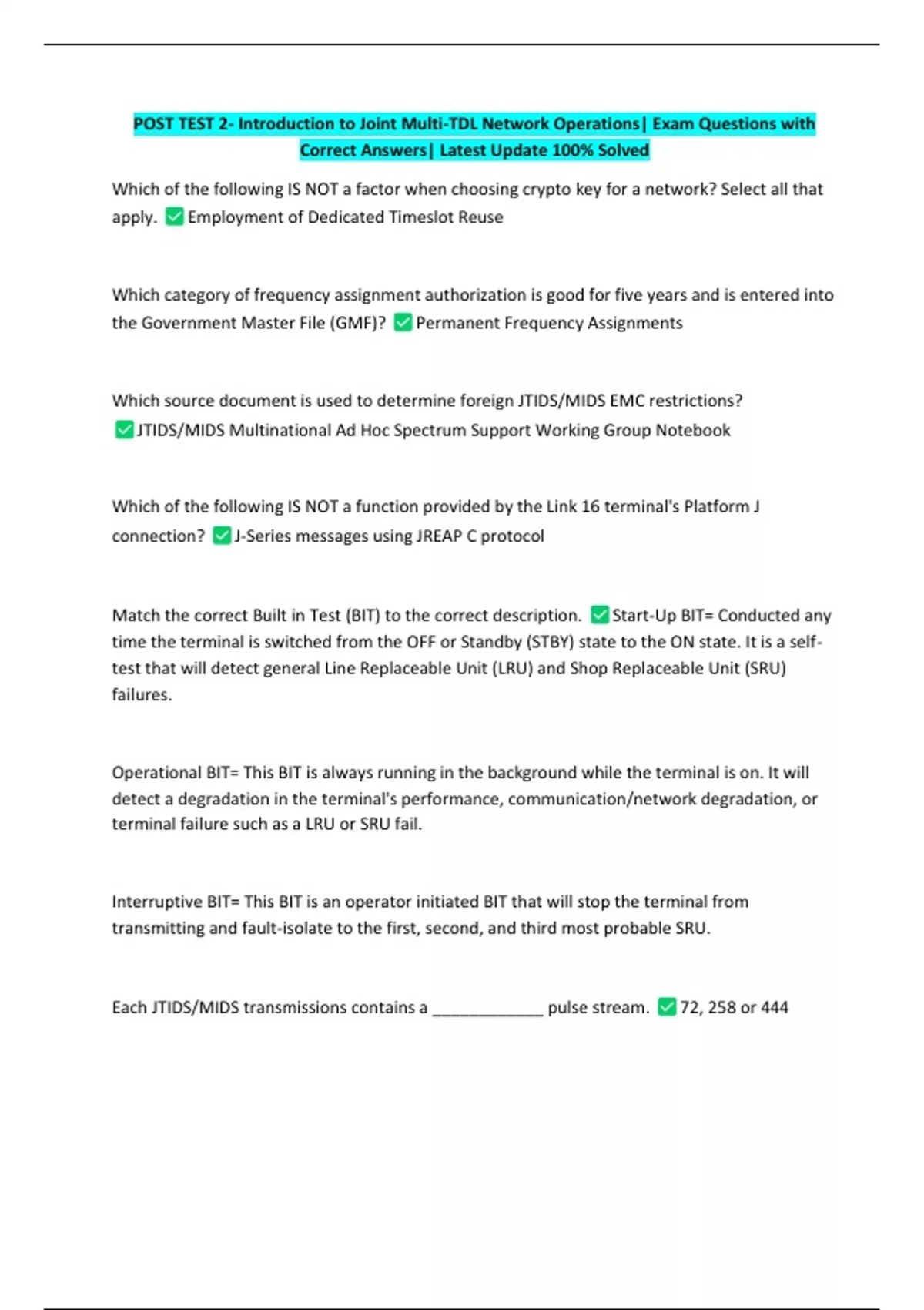 Each JTIDS/MIDS transmissions contains a ____________ pulse stream. 72, 258 or 444