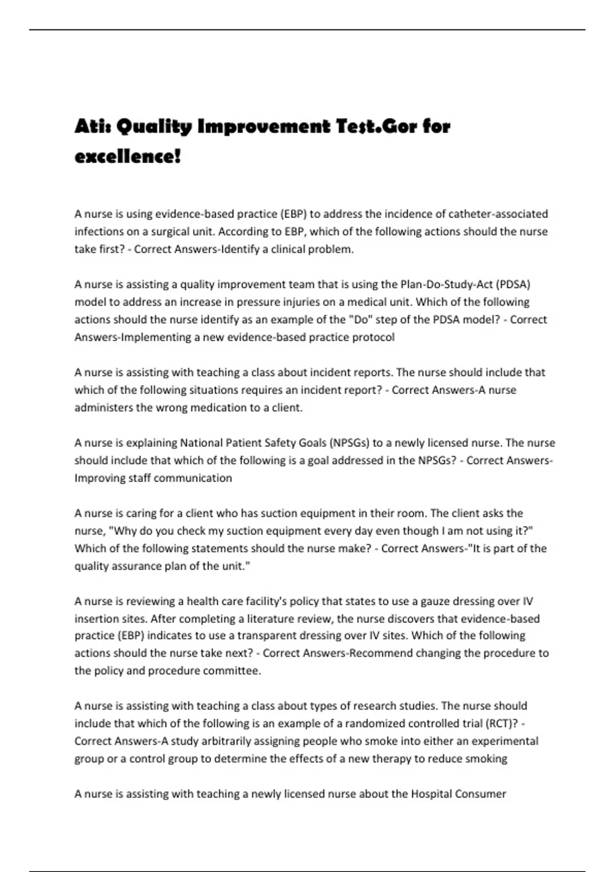 Ati: Quality Improvement Test.Gor for