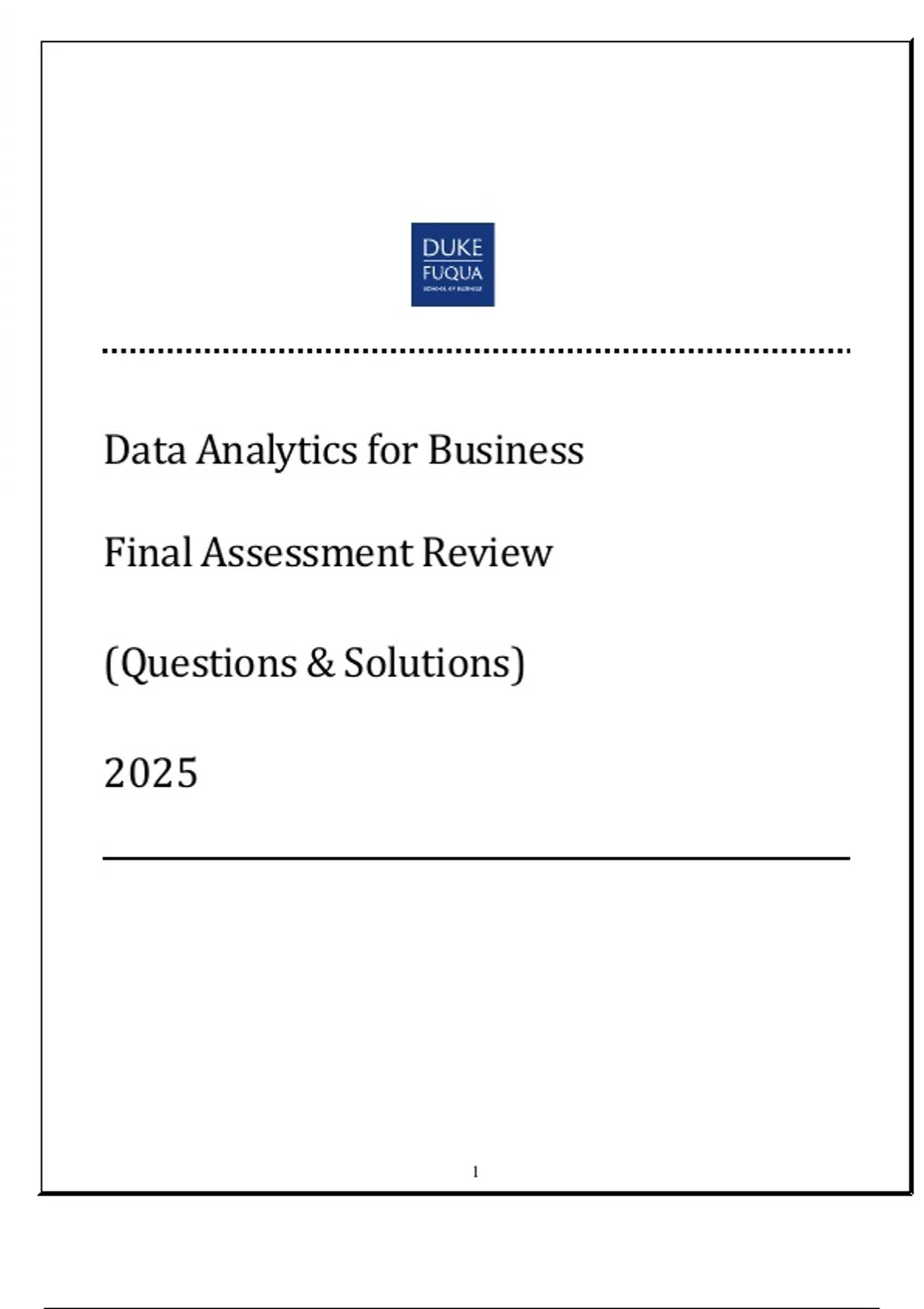 Data Analytics for Business - Final Assessment Review(Qns & Ans) - Duke Fuqua 2025Data Analytics for Business - Final Assessment Review(Qns & Ans) - Duke Fuqua 2025Data Analytics for Business - Final Assessment Review(Qns & Ans) - Duke Fuqua 2025