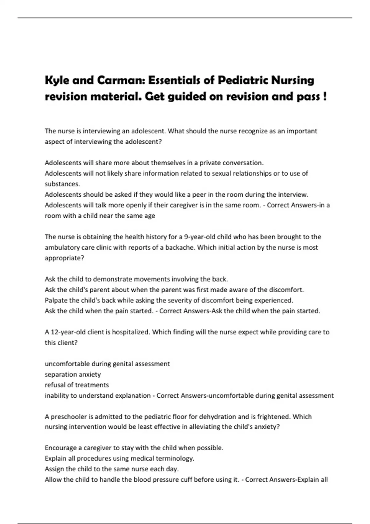 Get real nursing exam questions with certified answers. Perfect for quick revision and exam prep. Clear, accurate and easy to use. Package deals also available with 50 % offer. Study smart, pass fast!