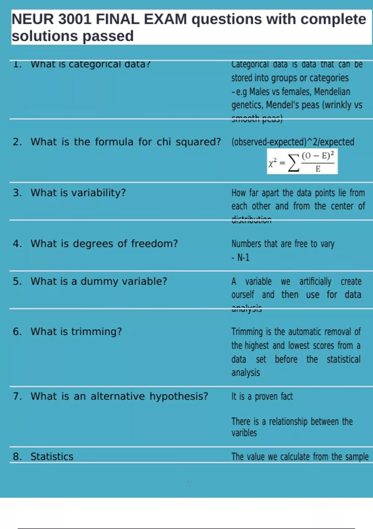 NEUR 3001 FINAL EXAM questions with complete solutions passed