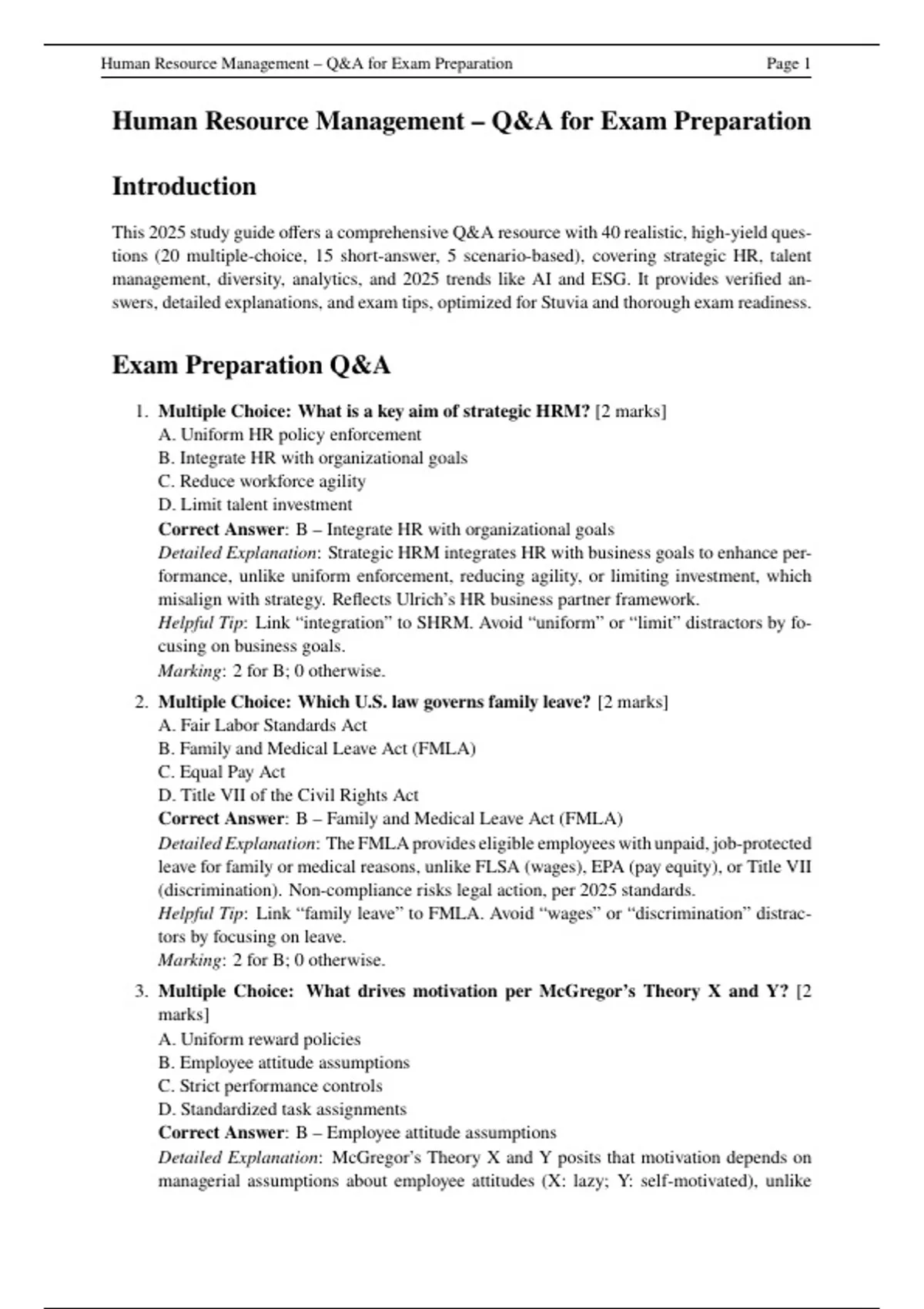 , Human Resource Management – Q&A for Exam Preparation Page 2