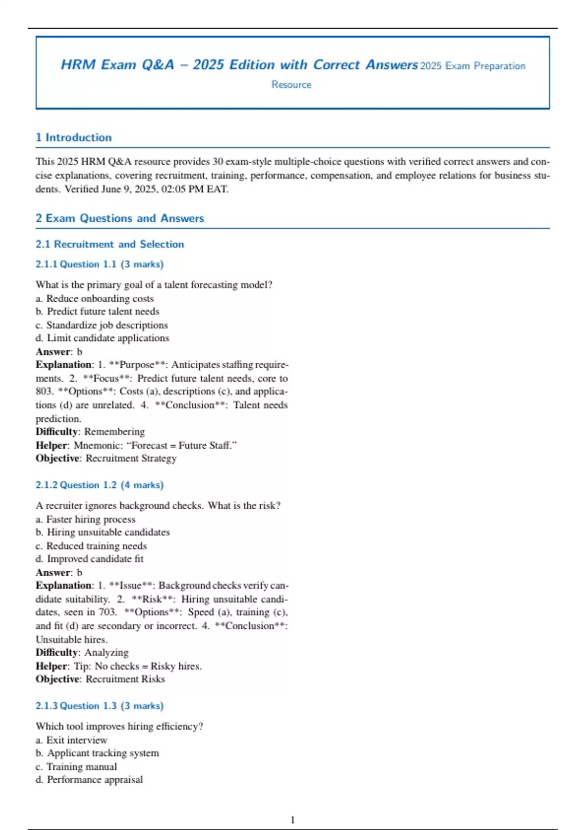 This 2025 HRM Q&A resource provides 30 exam-style multiple-choice questions with verified correct answers and con-