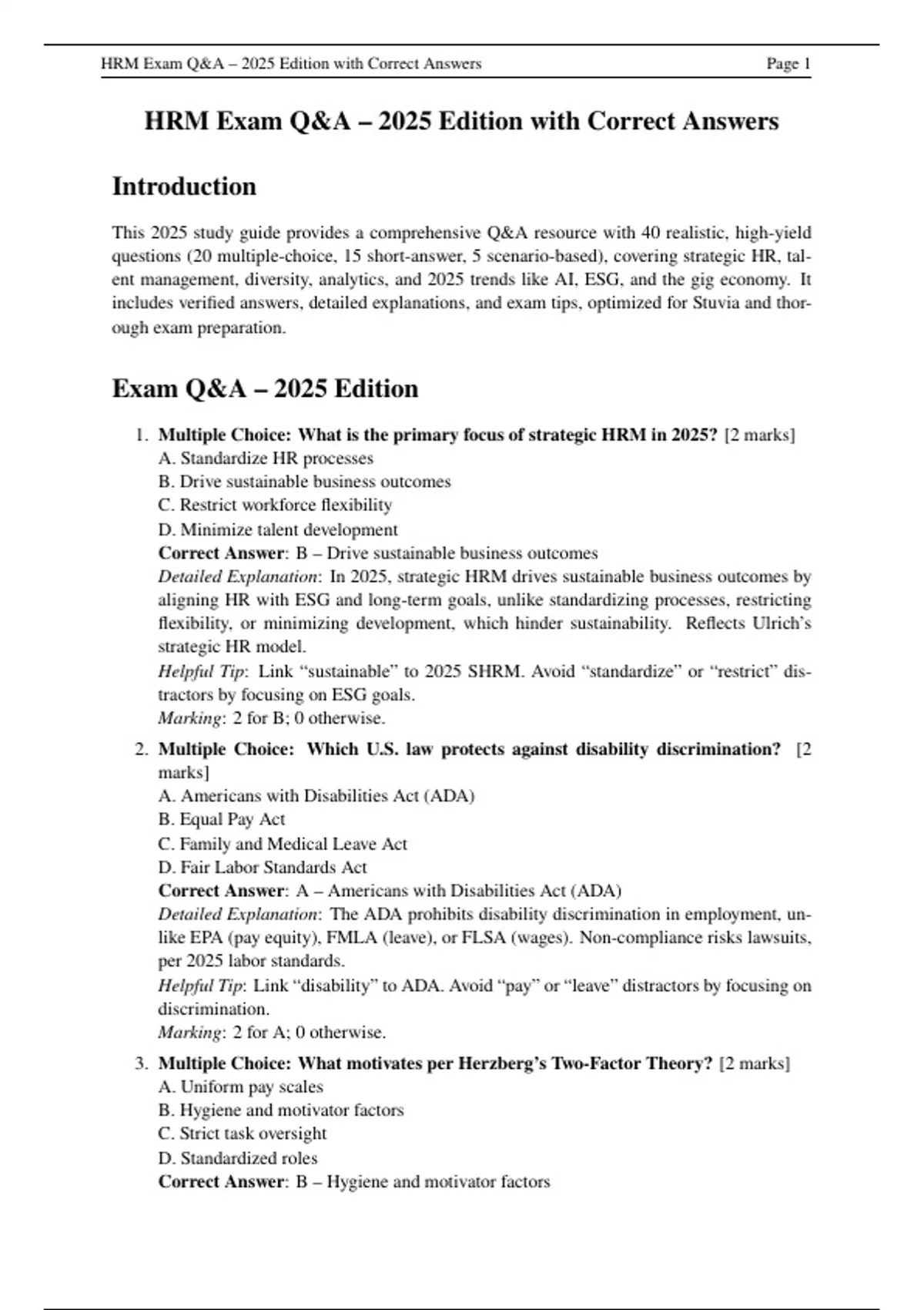, HRM Exam Q&A – 2025 Edition with Correct Answers Page 2