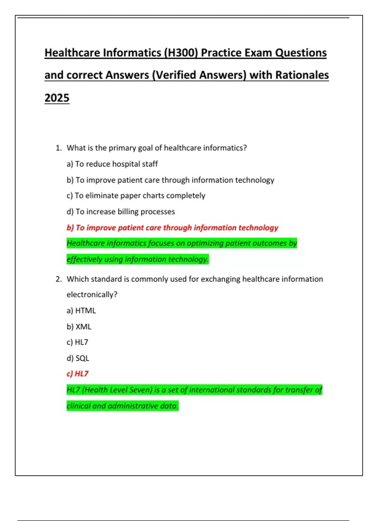 1. What is the primary goal of healthcare informatics?