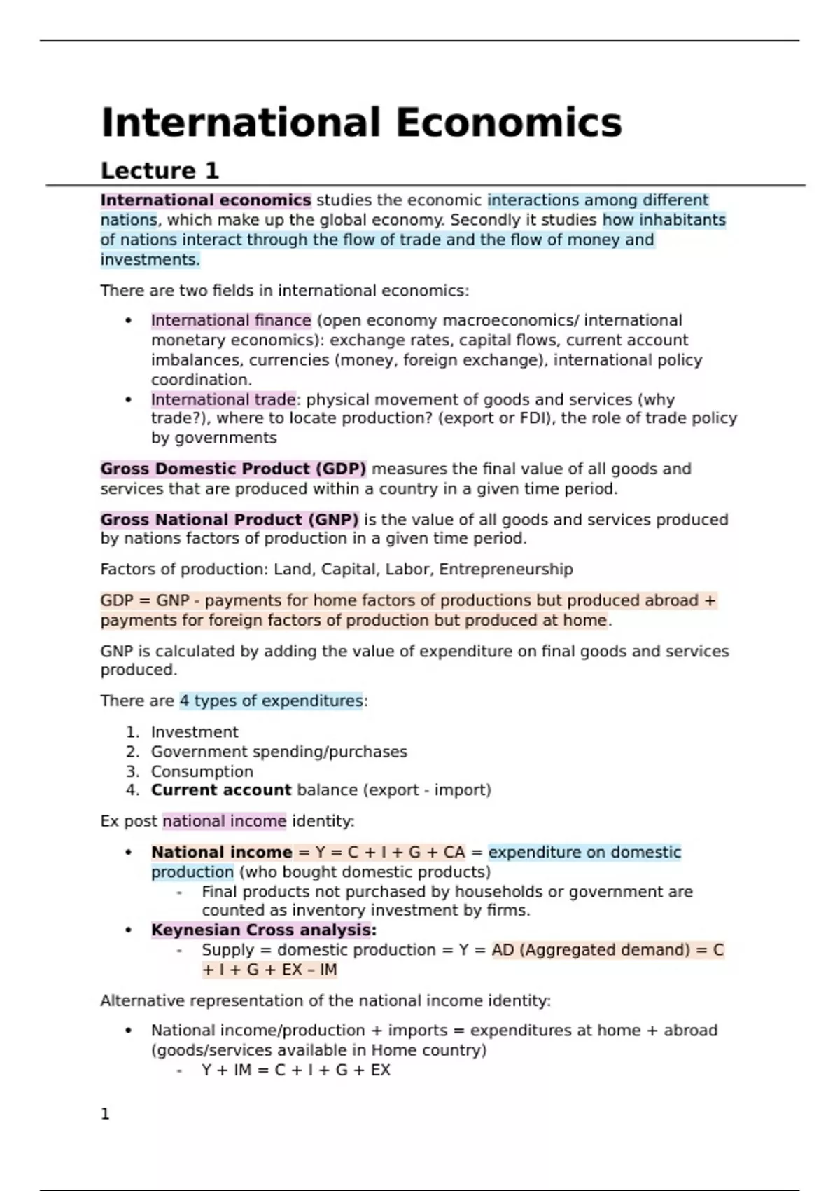 Samenvatting - International economics (MAN-BCU2021)