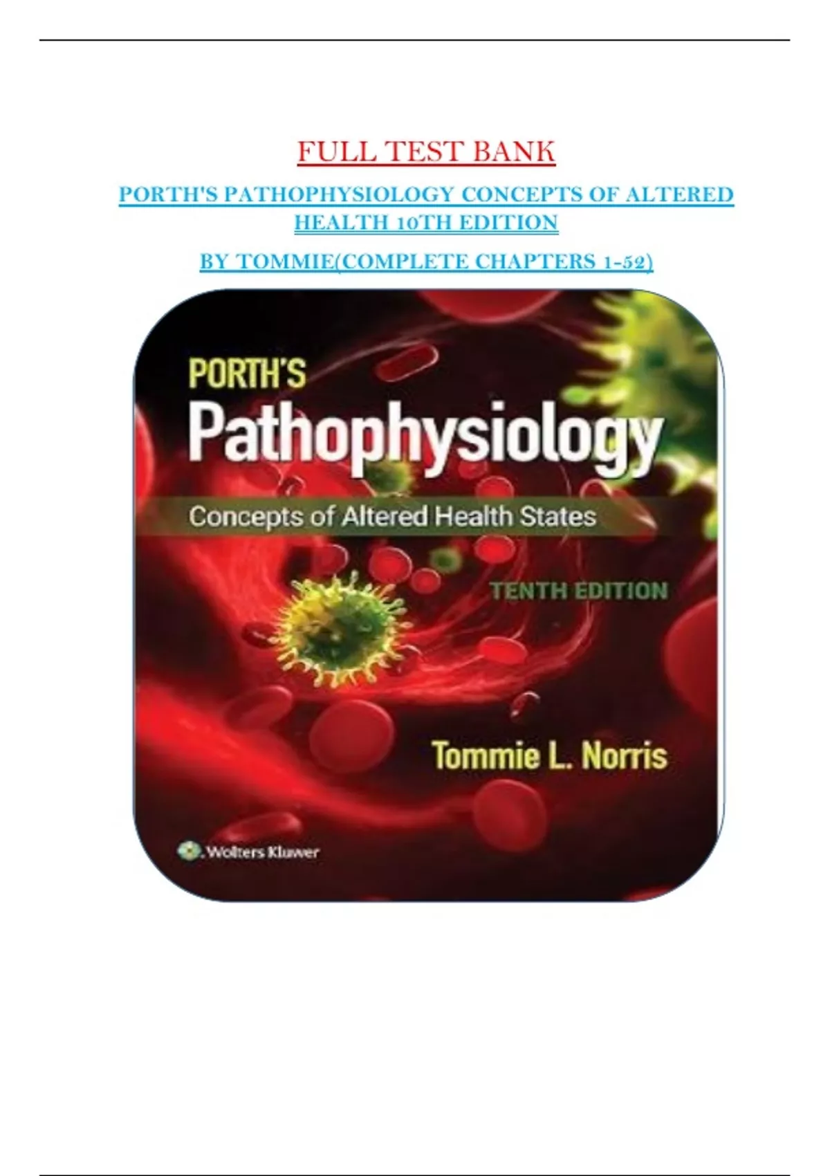 ,PORTH'S PATHOPHYSIOLOGY CONCEPTS OF ALTERED HEALTH 10TH EDITION