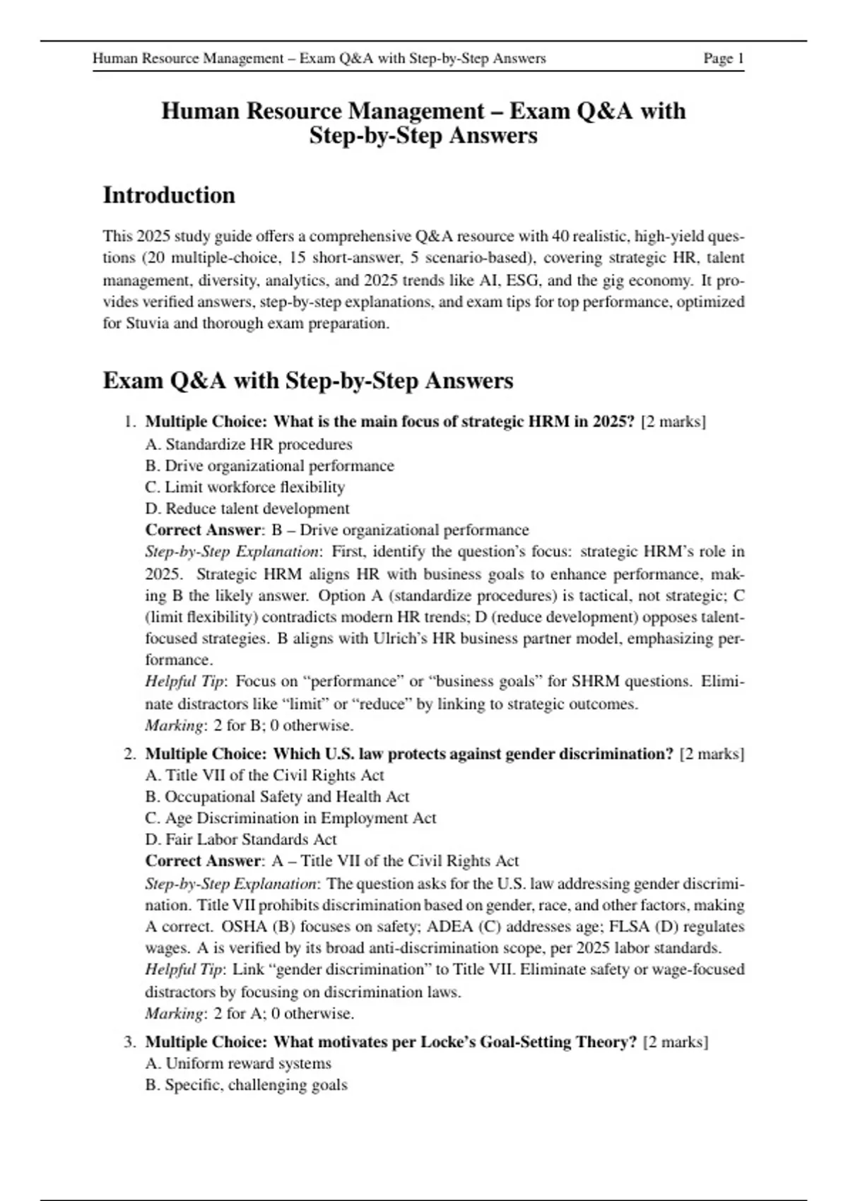 , Human Resource Management – Exam Q&A with Step-by-Step Answers Page 2